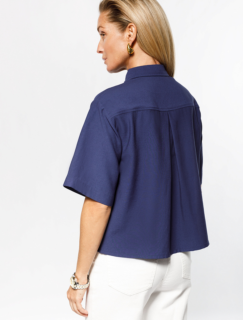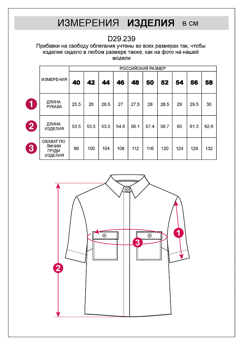 Блузка выполнена из плотного лиоцелла. Модель дополнена накладными карманами в стиле сафари. Застежка-планка на черепаховые пуговицы. Добавление синтетических волокон в составе изделия предотвращает сминаемость. Для создания завершенного образа, сочетайте в костюме с шортами D28.054, брюками D24.214, D24.218 и юбкой D26.181