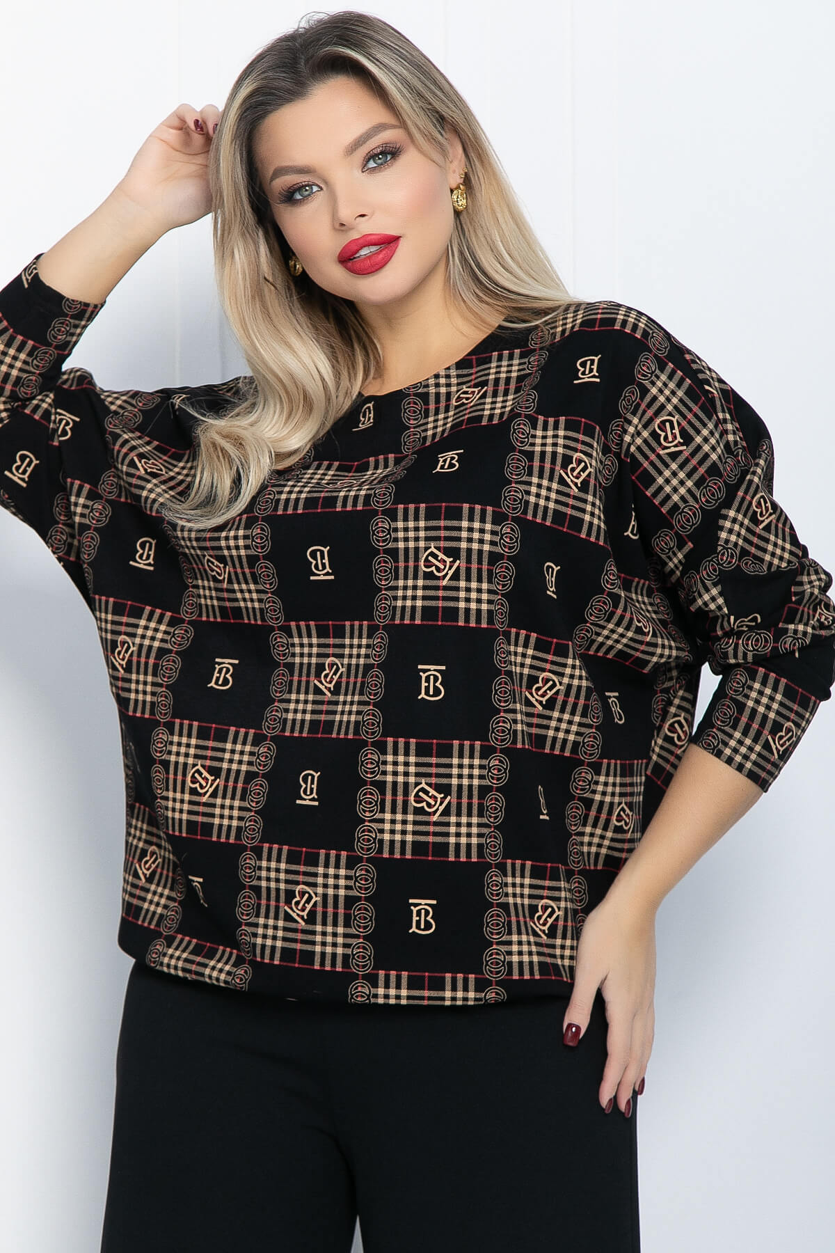 Женственный блузон, выполненный в стиле оверсайз, безусловно станет фаворитом в вашем модном гардеробе. Полноценная длина изделия на кулиске с фиксатором, рукав "летучая мышь" и свободный крой обеспечат комфорт и свободу движений. Манжет удлинен и заужен таким образом, чтобы рукав можно было носить слегка укороченным. Актуальный модный принт позволит вам выделяться. Блузон прекрасно сочетается как с брюками, так и с юбкой. Любое мероприятие в прохладную погоду - подходящий повод надеть такой блузон.