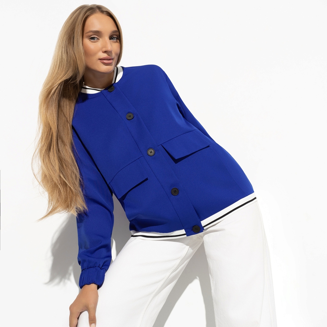 Бомбер «Бунтарка» станет незаменимой частью гардероба ваших клиентов. Его универсальный дизайн позволяет легко сочетать его с различными элементами одежды, создавая как повседневные, так и более официальные образы. Крупные пуговицы и резинка на рукавах придают бомберу современный и стильный вид, который привлечет внимание и подчеркнет индивидуальность. Заказывая оптом, вы получаете возможность предложить своим клиентам модный и востребованный продукт, который будет пользоваться популярностью.
