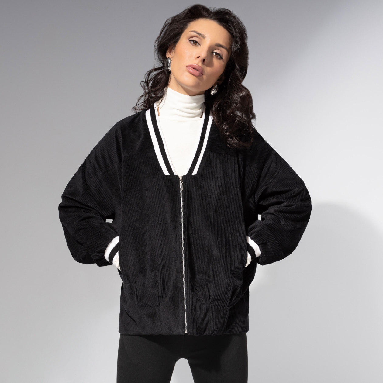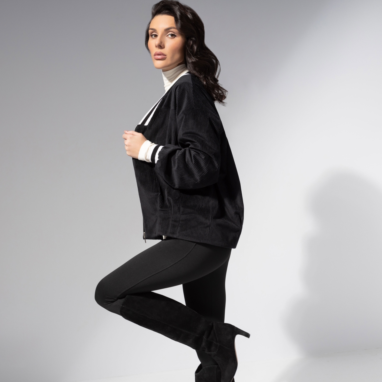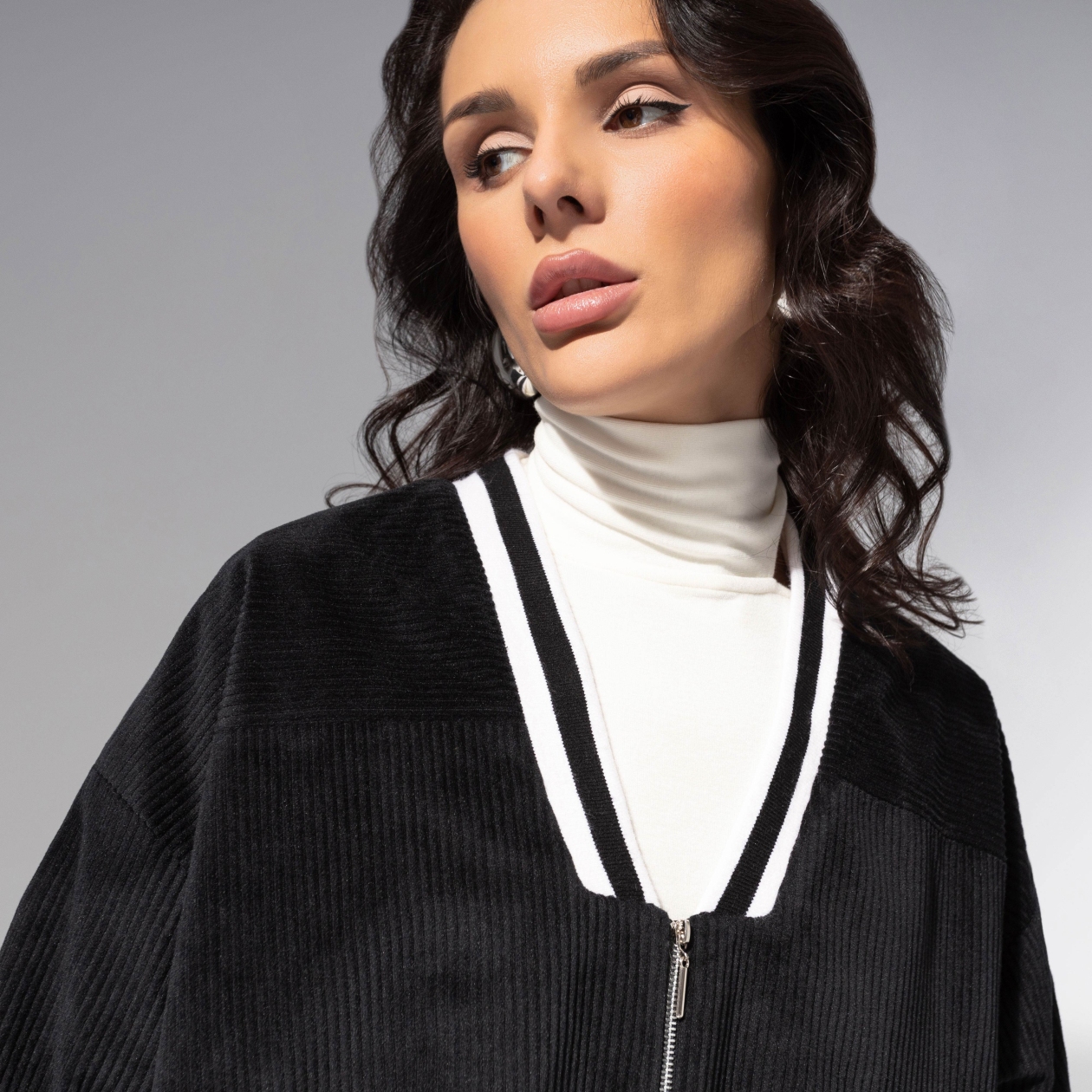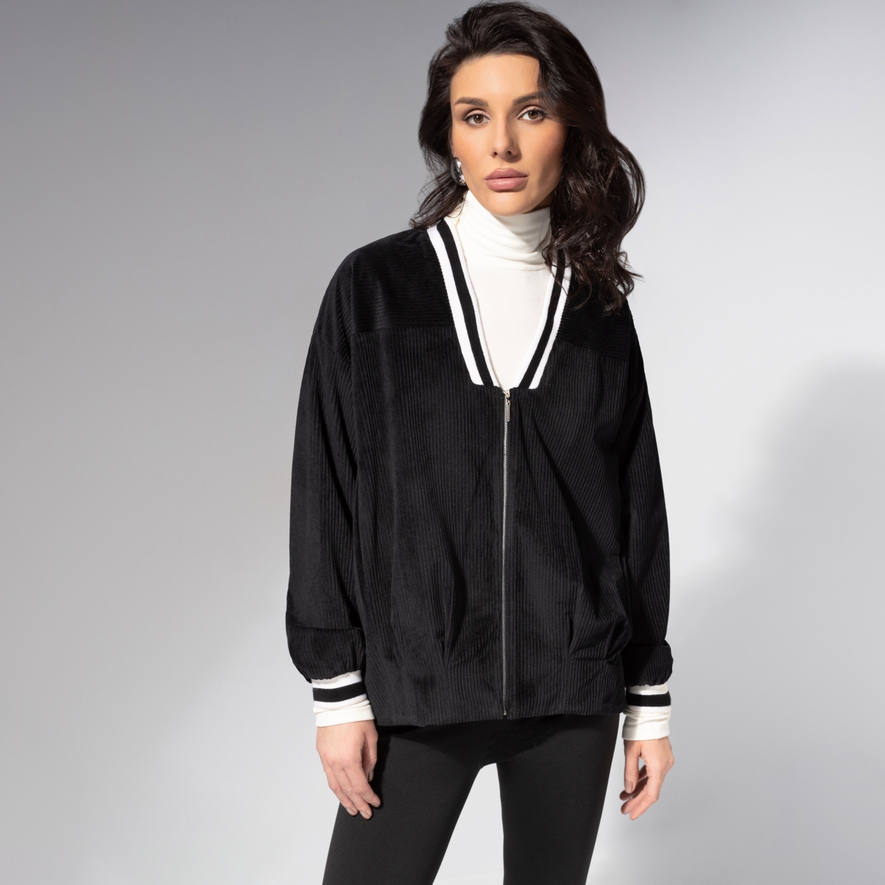 Она знает правила, но предпочитает их нарушать. Бомбер ЧАРУТТИ в стиле sport-chic – для тех, кто ценит баланс силы и утончённости. Эстетика 90-х возвращается с новым звучанием: уютный вельвет, мягкий крой, контрастные детали. Модель с защипами с низу. Застёжка на молнию. Манжеты и воротник выполнены из эластичного трикотажа с контрастной полосой. Есть карманы. Ошибка при загрузке данных! (https://charutti.ru/upload/video-site/00000012260_video_site.mp4)
