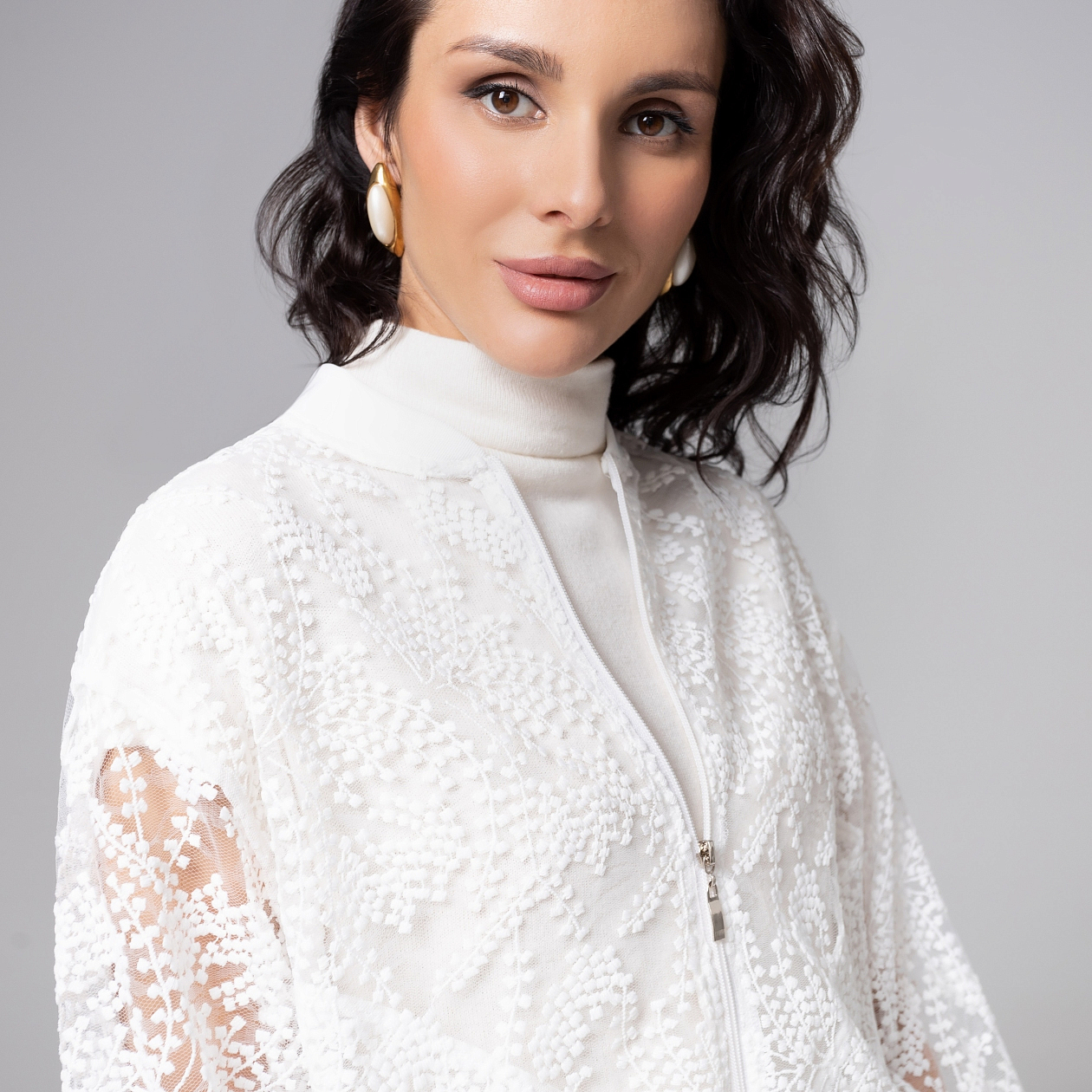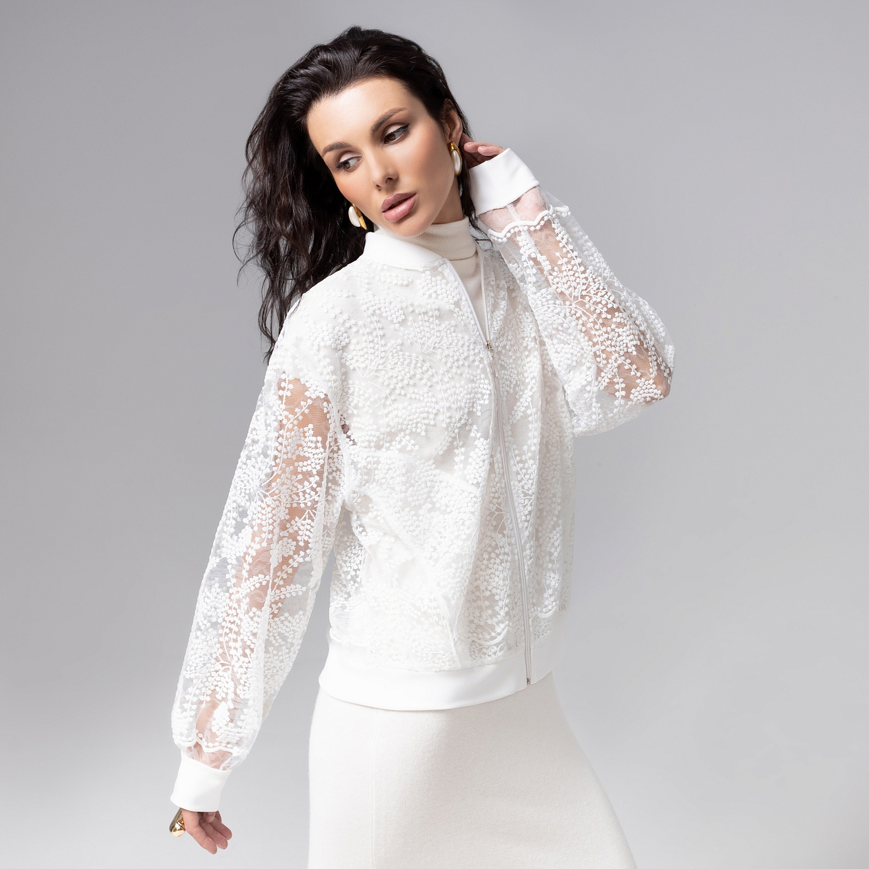 Бомбер кружевной с вышивкой, Секрет смелости (белоснежный)