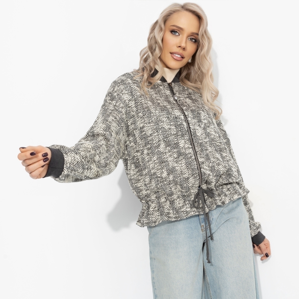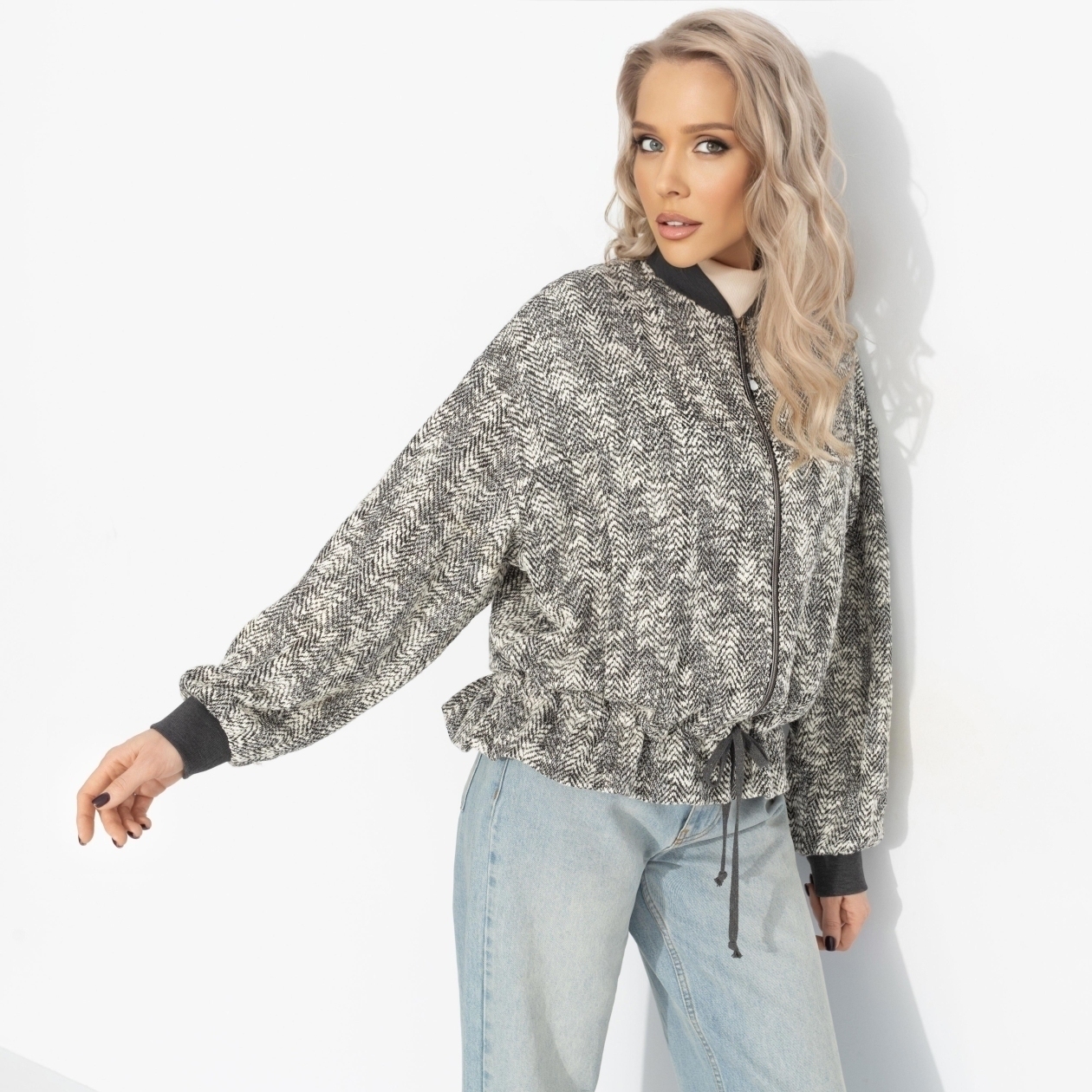 Есть вещи, к которым хочется приксаться бесконечно. Твой новый бомбер из ЧАРУТТИ как раз такой: мягкий футер-жаккард согревает, будто уютный плед, только в формате городской модницы. Бомбер из трикотажа с содержанием хлопка и вискозы. Объемный силуэт со спущенной линией плеча не сковывает движения. Манжеты и воротник из эластичного трикотажа аккуратно облегают, удерживая тепло. По низу – кулиска с декоративным плетеным шнурком, позволяющим регулировать посадку и создавать более собранный или расслабленный силуэт.