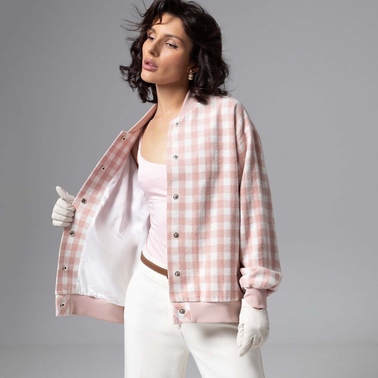 Бомбер, который станет фаворитом сезона. Трендовый цвет и модная клетка. Безупречное качество пошива. Эстетическая составляющая соединенная с функциональным комфортом. Бомбер классического силуэта из мягкой, тактильно прияятной ткани, слегка оверсайз. Изделие с карманами и подкладом.