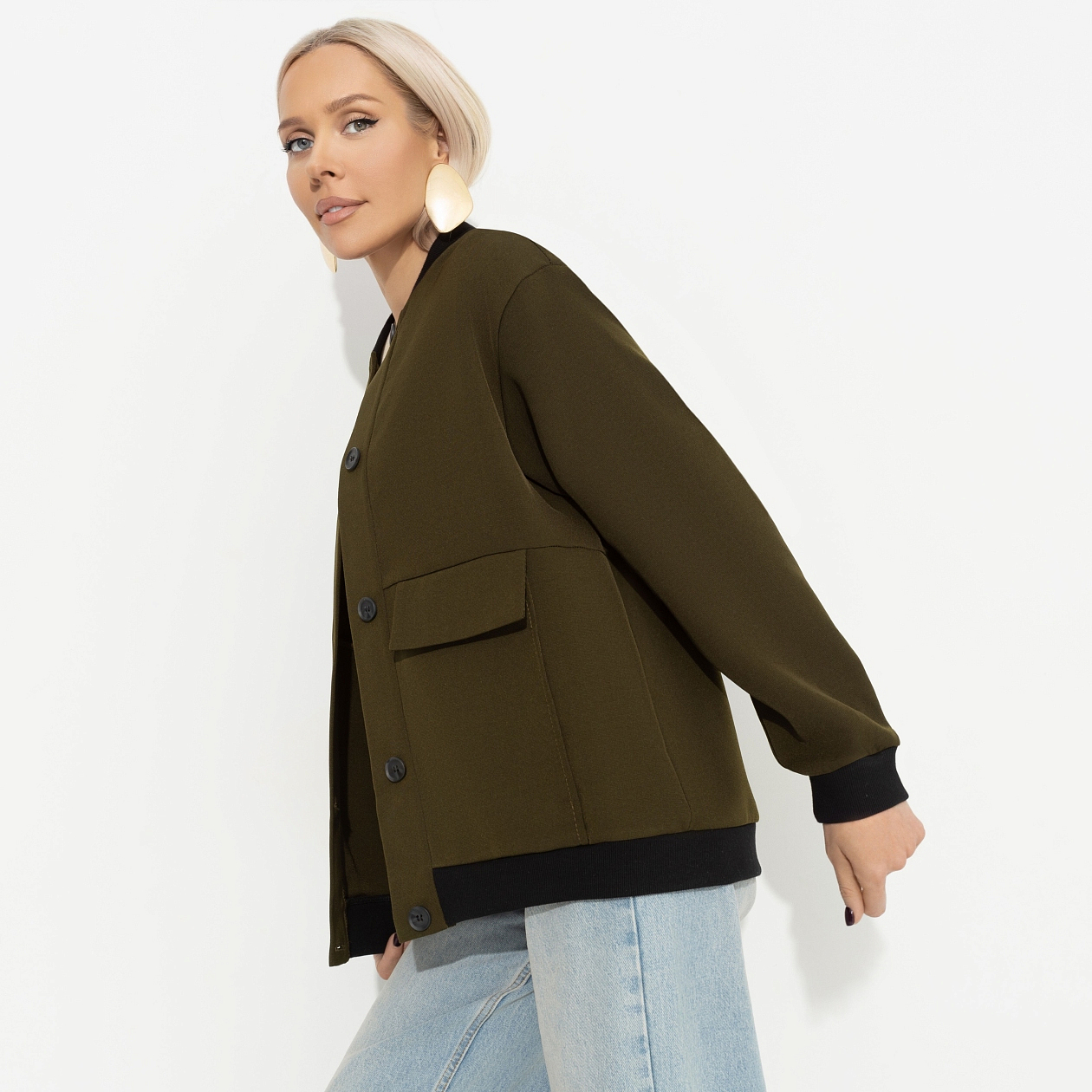 Пасмурный день. Настроение – ждать солнца, пить какао и работать работу. Как вдруг звонок от курьера. Накидываешь бомбер CHARUTTI, спускаешься вниз и принимаешь огромный букет цветов. И день уже не кажется пасмурным. Бомбер свободного кроя. Есть карманы. Манжеты и подол изделия оформлены трикотажной резинкой контрастного цвета. Бомбер застегивается на пуговицы.