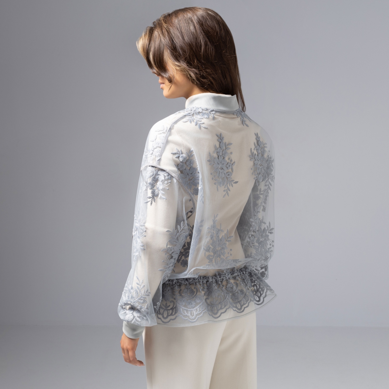 Однажды она надевет бомбер и выходит на балкон с видом на вечерний город – легкий трепет кружева на ветру, серебряные огни подчеркивают каждый изгиб ткани. Слишком изысканно для правил, слишком ярко для повседневности – сегодня вы в центре самого модного сюжета. Филигранная вышивка, мягкие манжеты и регулируемая кулиска – этот бомбер для тех, кто любит создавать истории и быть вдохновением для окружающих. Изделие с карманами.