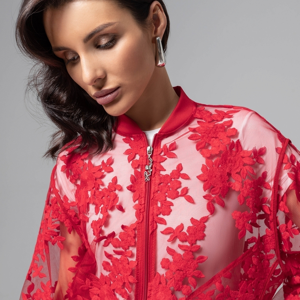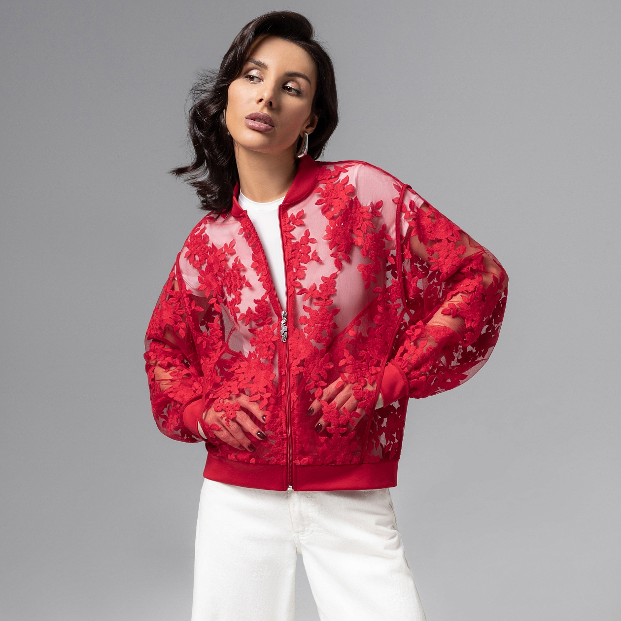 Бомбер ЧАРУТТИ как акцент вашего образа. Создавать впечатление о себе яркими мазками, не боясь переборщить. Таков девиз женщины, знающей себе цену. Бомбер из коллекции PREMIUM для смелых особ. Бомбер классического кроя. Ворот и манжеты выполнены из трикотажа. Основной материал изделия – сетка с вышивкой. Акцентные швы.