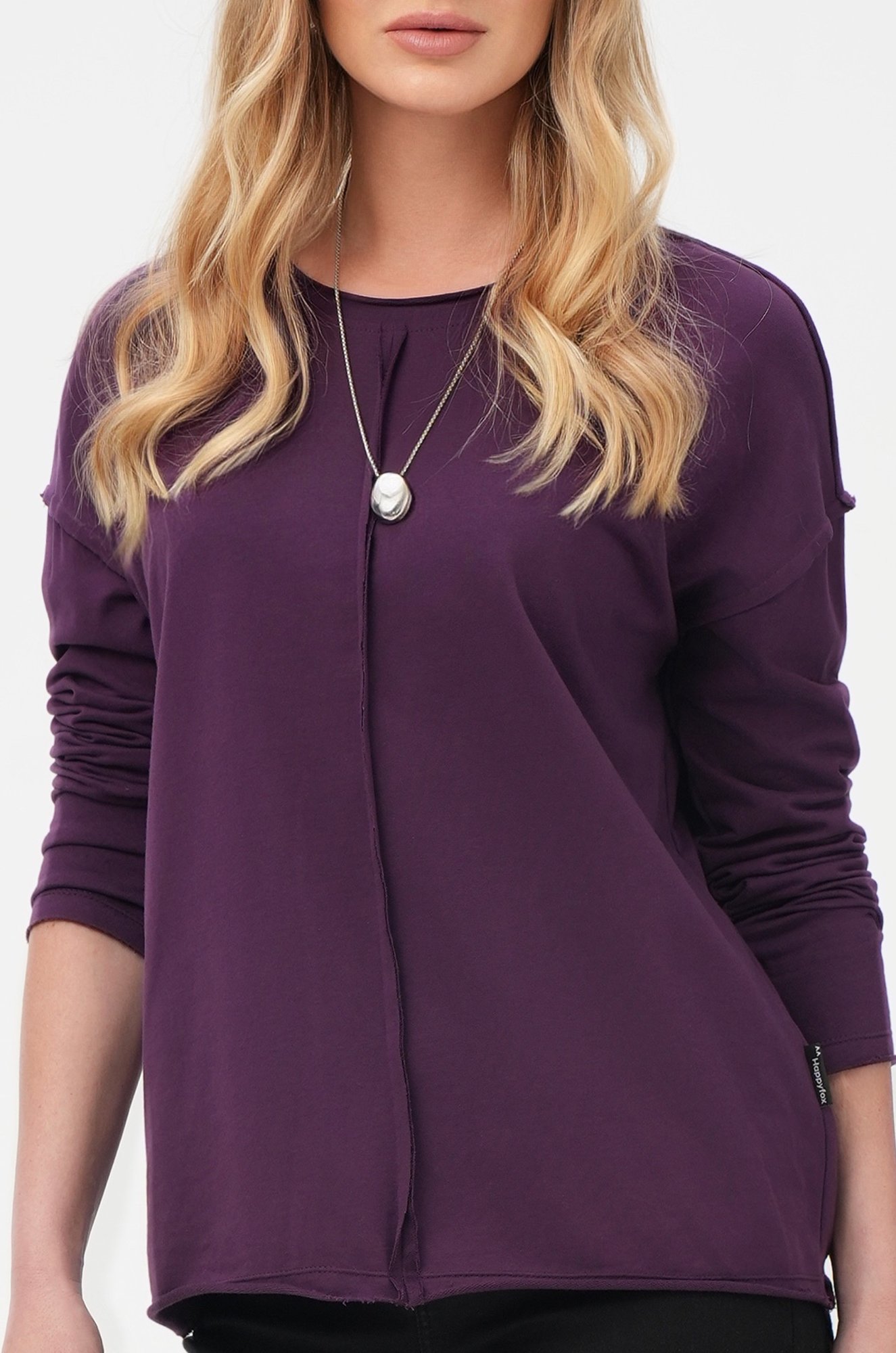 Комфорт с характером — фиолетовый женс..показатький лонгслив в стиле оверсайз создаёт расслабленное настроение и стильно завершает повседневный образ. Свободный хлопковый лонг идеален для лета, прохладных осенних вечеров и в демисезон.