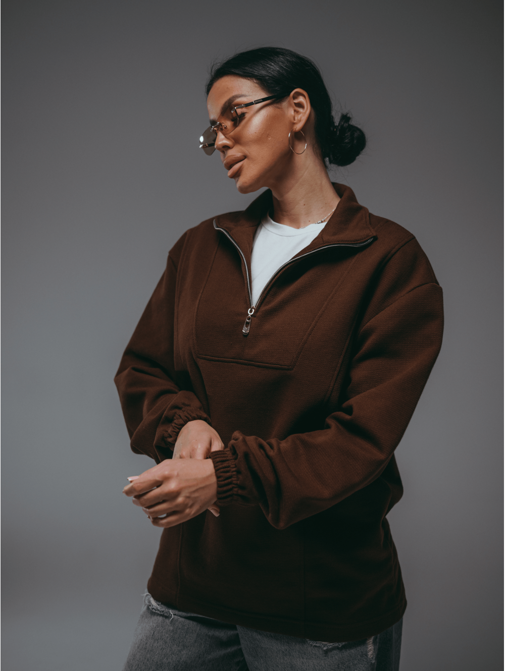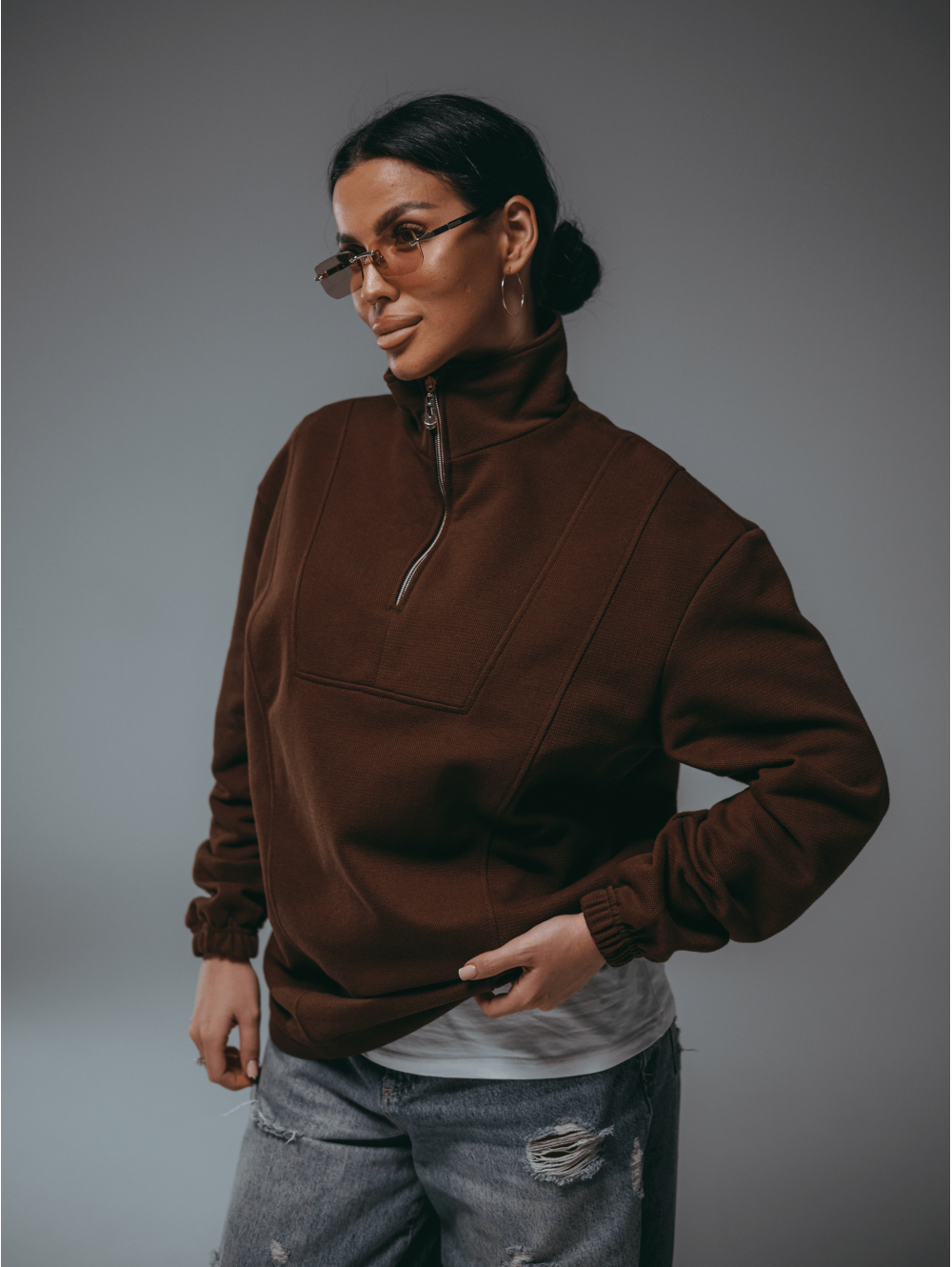 Свитшот женский с воротником стойкой на молнии — стильная и практичная модель для повседневных образов.