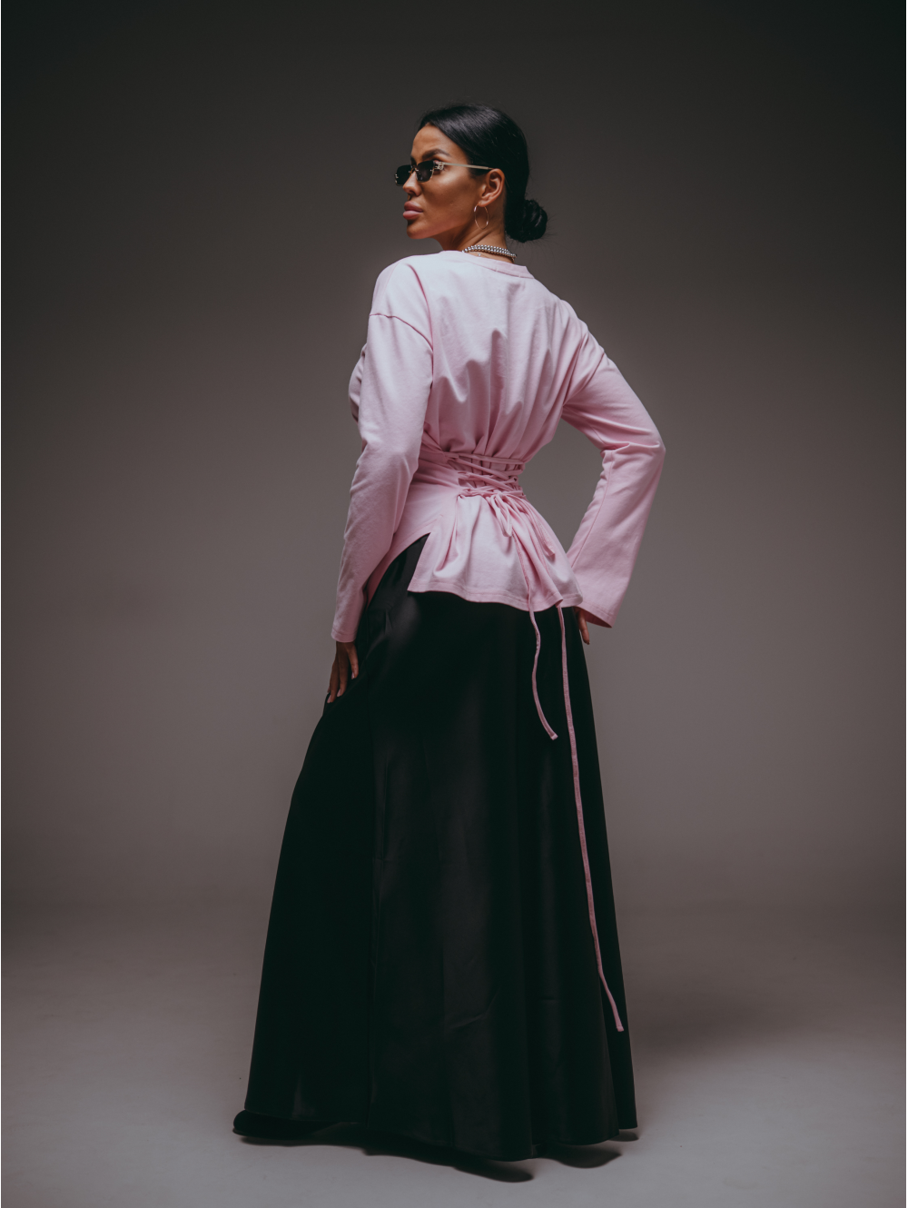 Лонгслив приталенного силуэта со шнуровкой из окантовки на спинке,