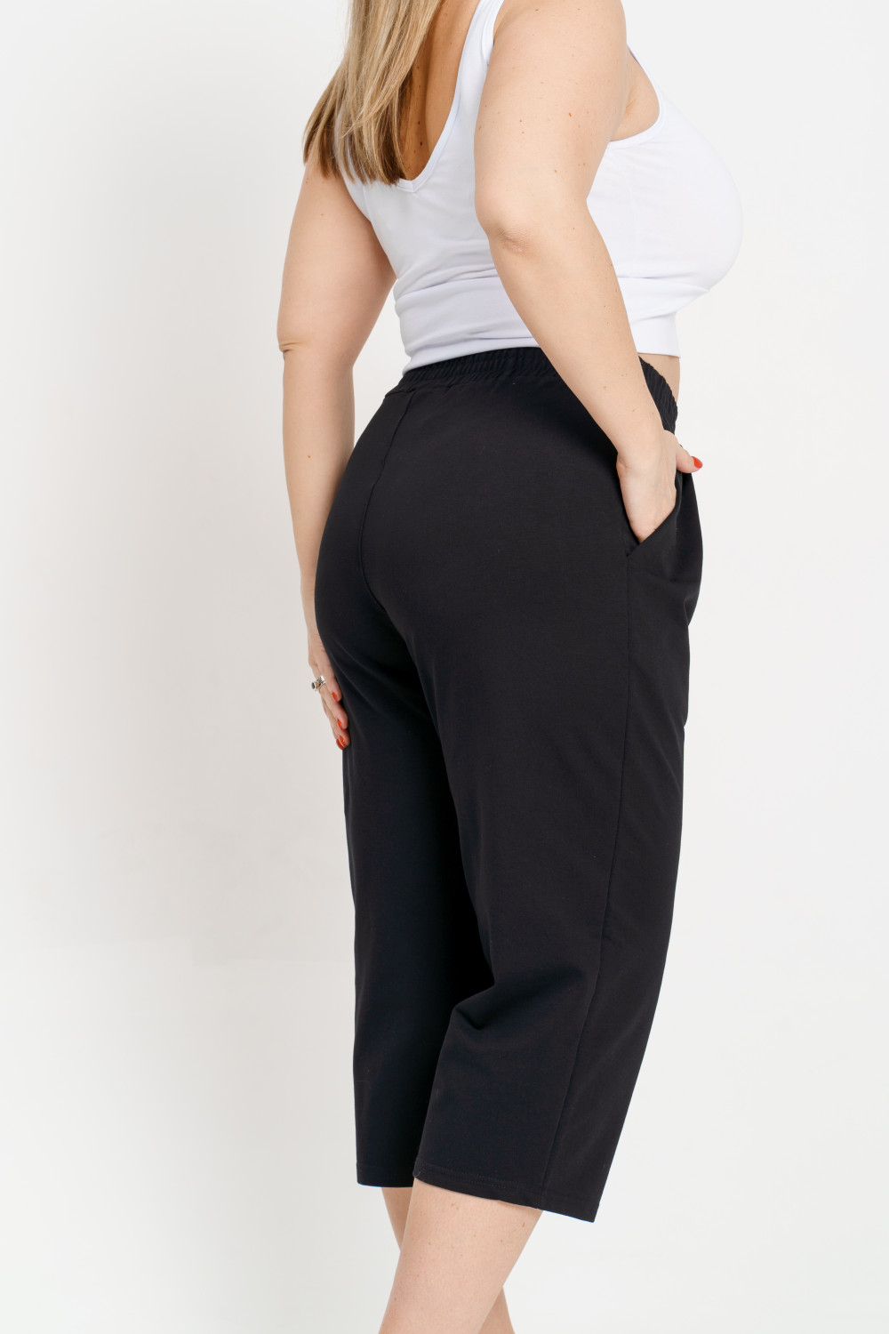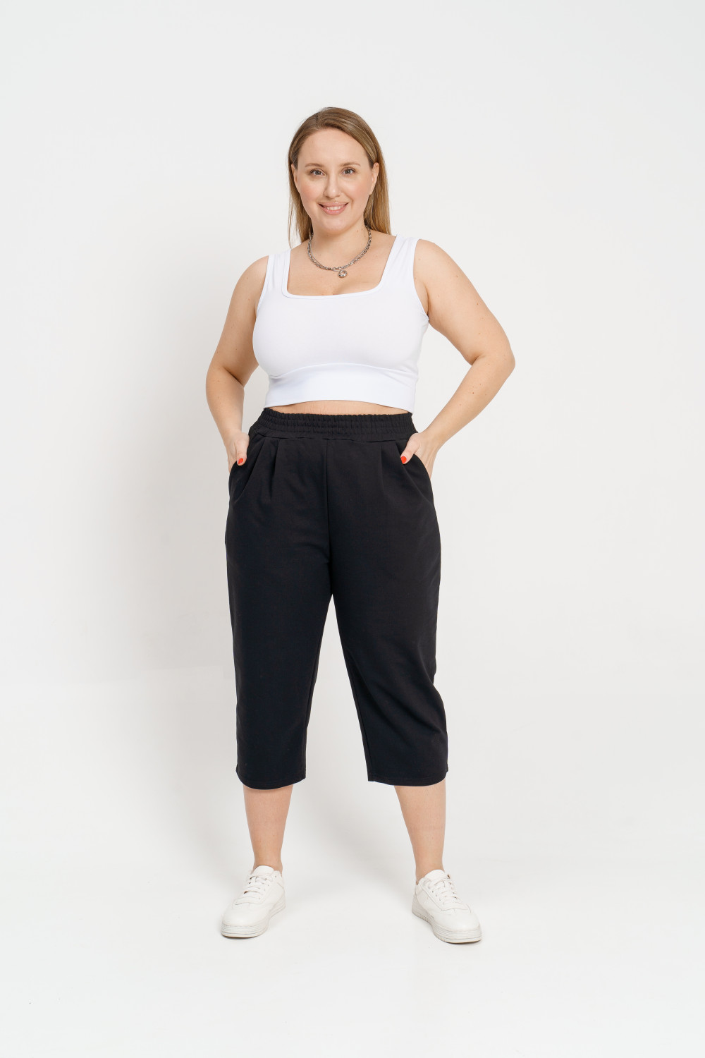 Широкие бриджи, отличаются легкостью и комфортным прилеганием к телу в области талии. Мягкая резинка на талии обеспечивает идеальную посадку. Бриджи с карманами и складками на талии выполнены из хлопкового футера, что придает ему стильный образ, а заодно выгодно подчеркивает фигуру. В комплекте с нашими джемперами из этой серии или нашими футболками получается прекрасный комплект, который подходит как для повседневной жизни, для прогулок и путешествий, так и для вечеринки. Получится образ в стиле «спорт шик». .