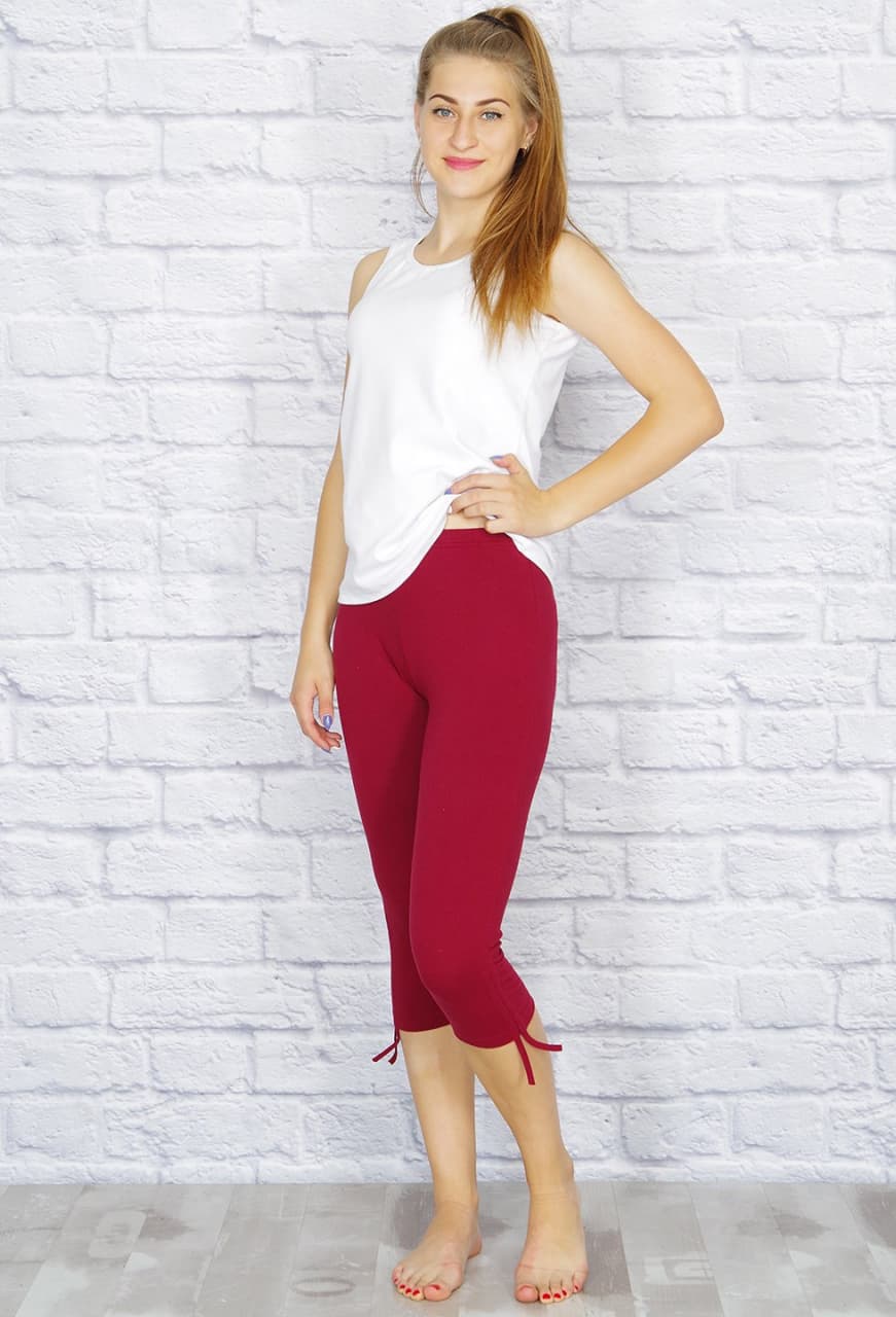 Женские эластичные бриджи снизу со сборкой на кулиске. Удобный вариант для дома или для занятий спортом.