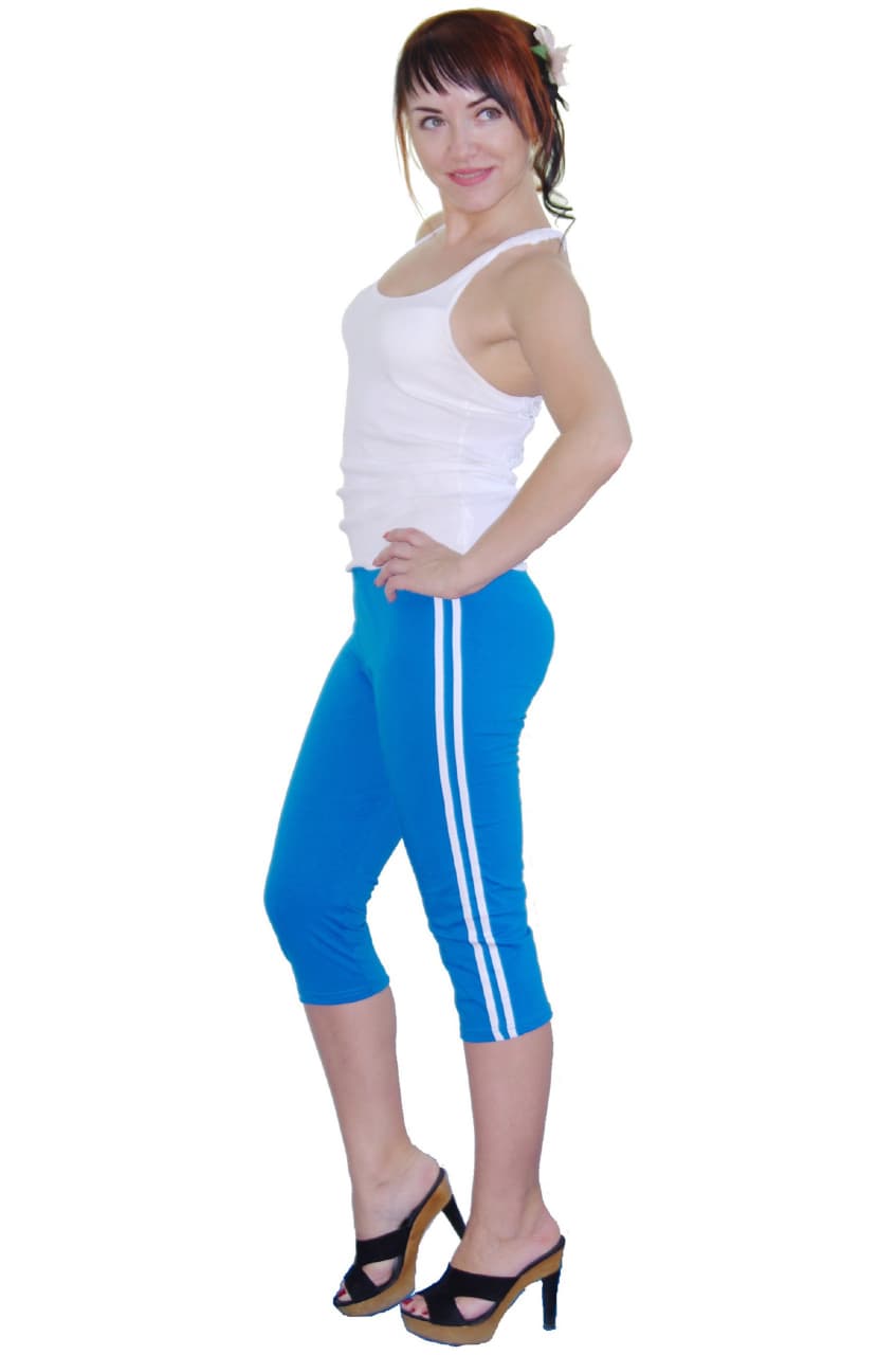 Бриджи женские с лампасами, лайкра (василек)