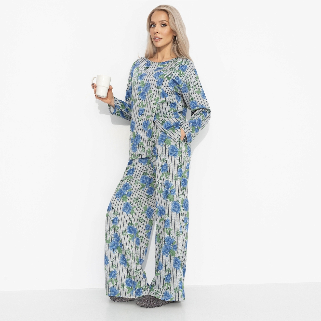 Идеальный вечер не требует плана. Только мягкие брюки, нежный верх и человек, который смотрит влюблённо. Она надела «Уют вдвоём» ‒ и дом сразу стал подозрительно романтичным. Чай вкуснее, плед мягче, партнёр внимательнее. Комплект от ЧАРУТТИ работает лучше любых свечей и фильтров. Комплект из двух позиций, брюки на эластичной резинке. Верх асимметричного кроя, без застежки.