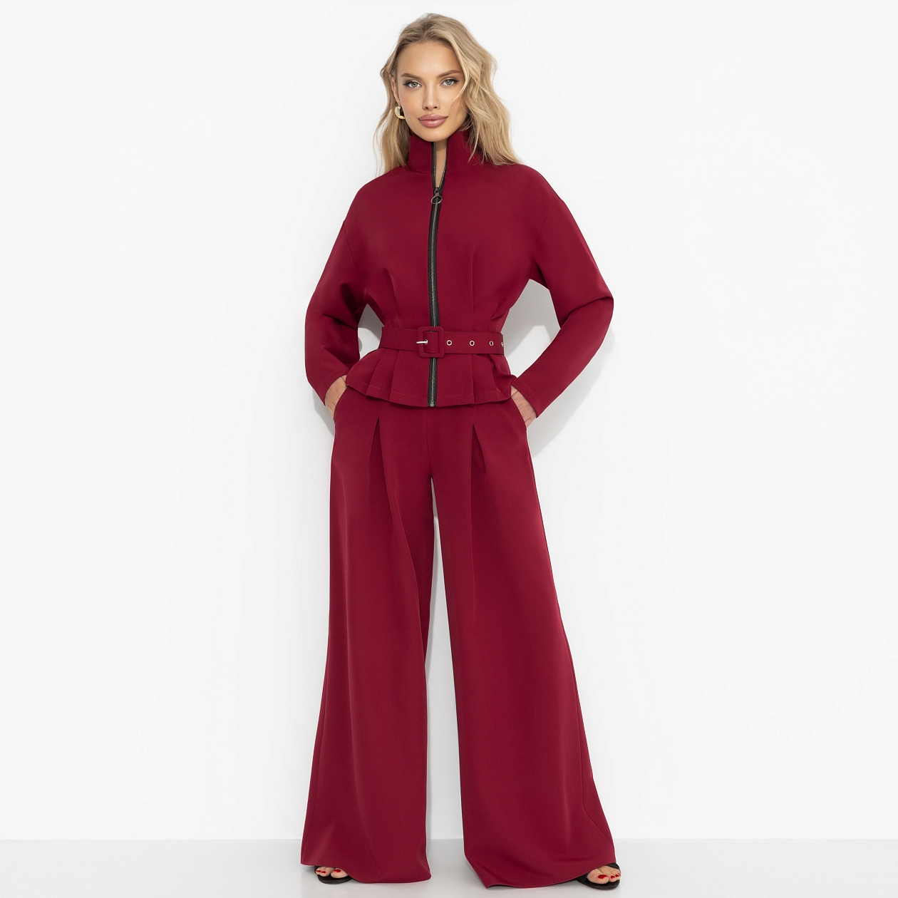 Брючный костюм спорт-шик, Так выглядит уверенность (бордо, 2 в 1, с поясом)