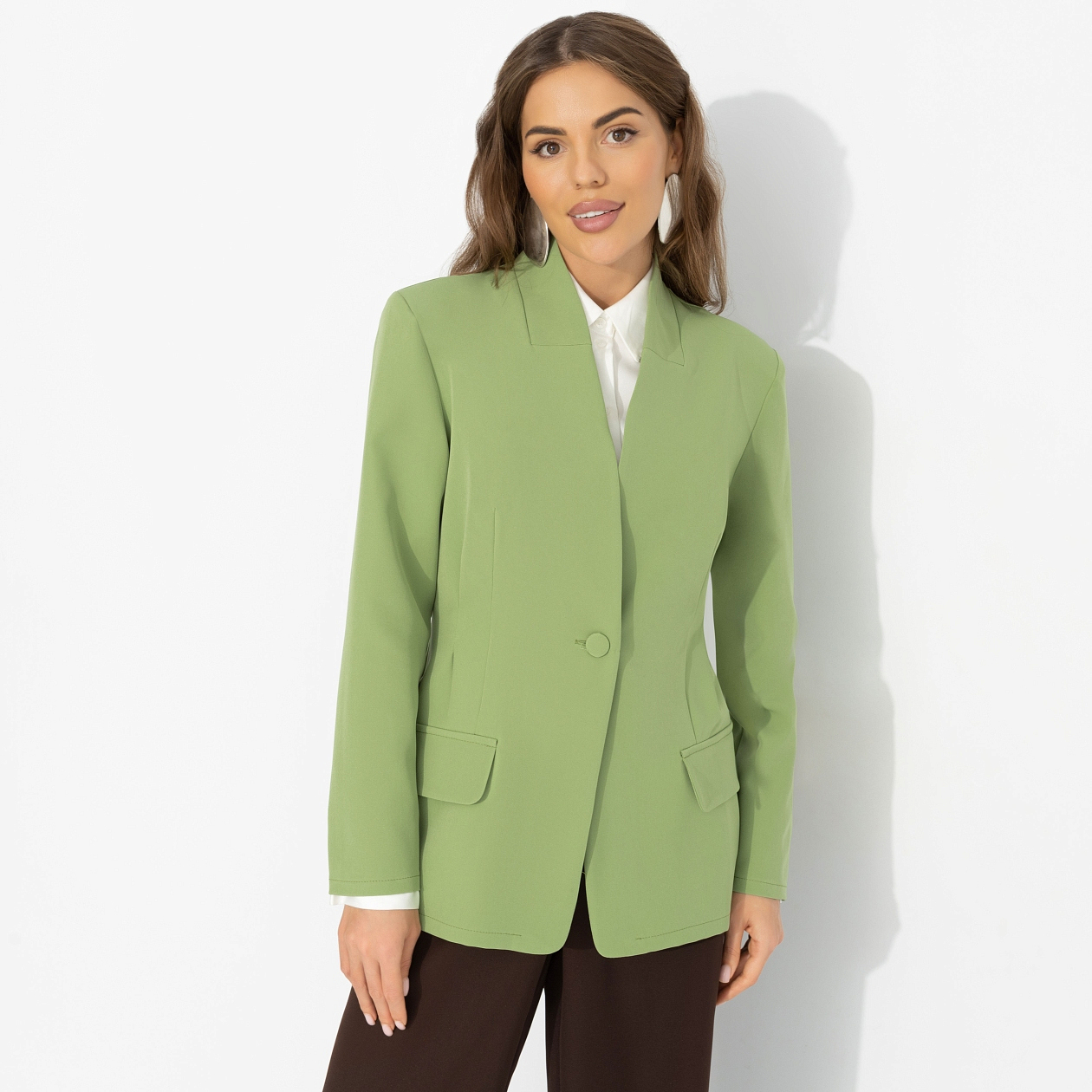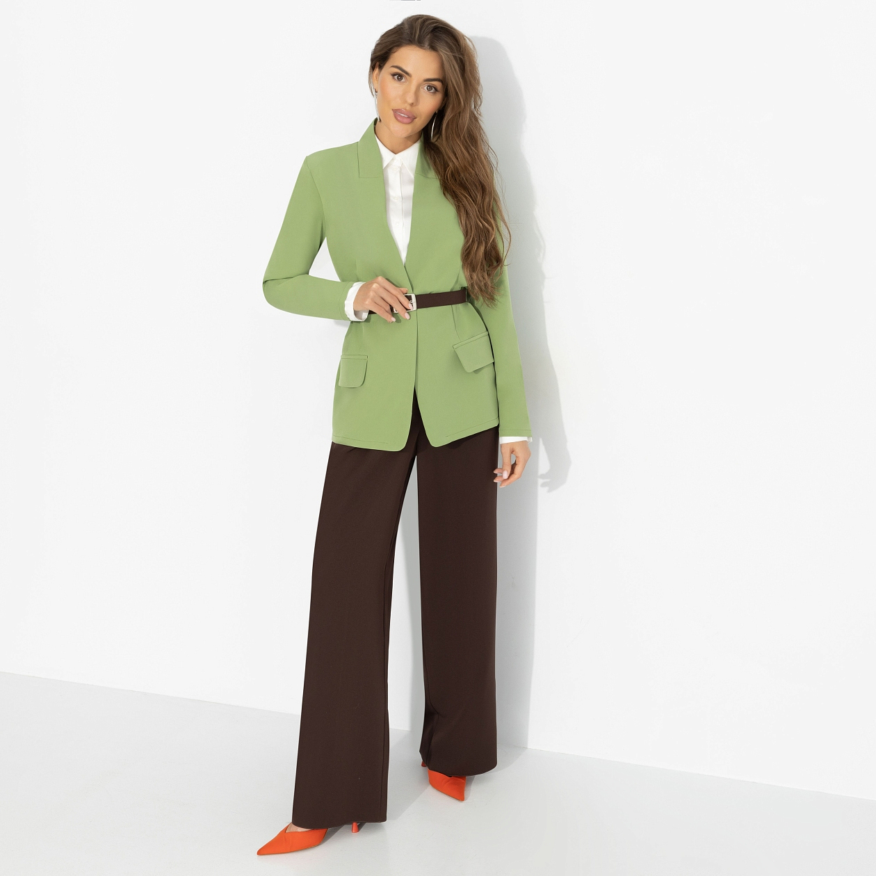 В коллекциях 2026 царит тренд контрастной архитектуры: сложные сочетания оттенков, чёткие линии, игра пропорций. Этот комплект от ЧАРУТТИ точно попадает в ритм времени – свежий зелёный звучит как модный вызов, тёмные брюки добавляют глубины, а силуэт собирается в уверенную, выверенную композицию. Можно носить изделия по отдельности, но именно их сочетание подчёркивает трендовую графичность образа: жакет подчеркивает талию, прямые брюки вытягивают линию фигуры. Выбор тех, кто любит дерзкую интеллектуальность и использует стиль как язык влияния.