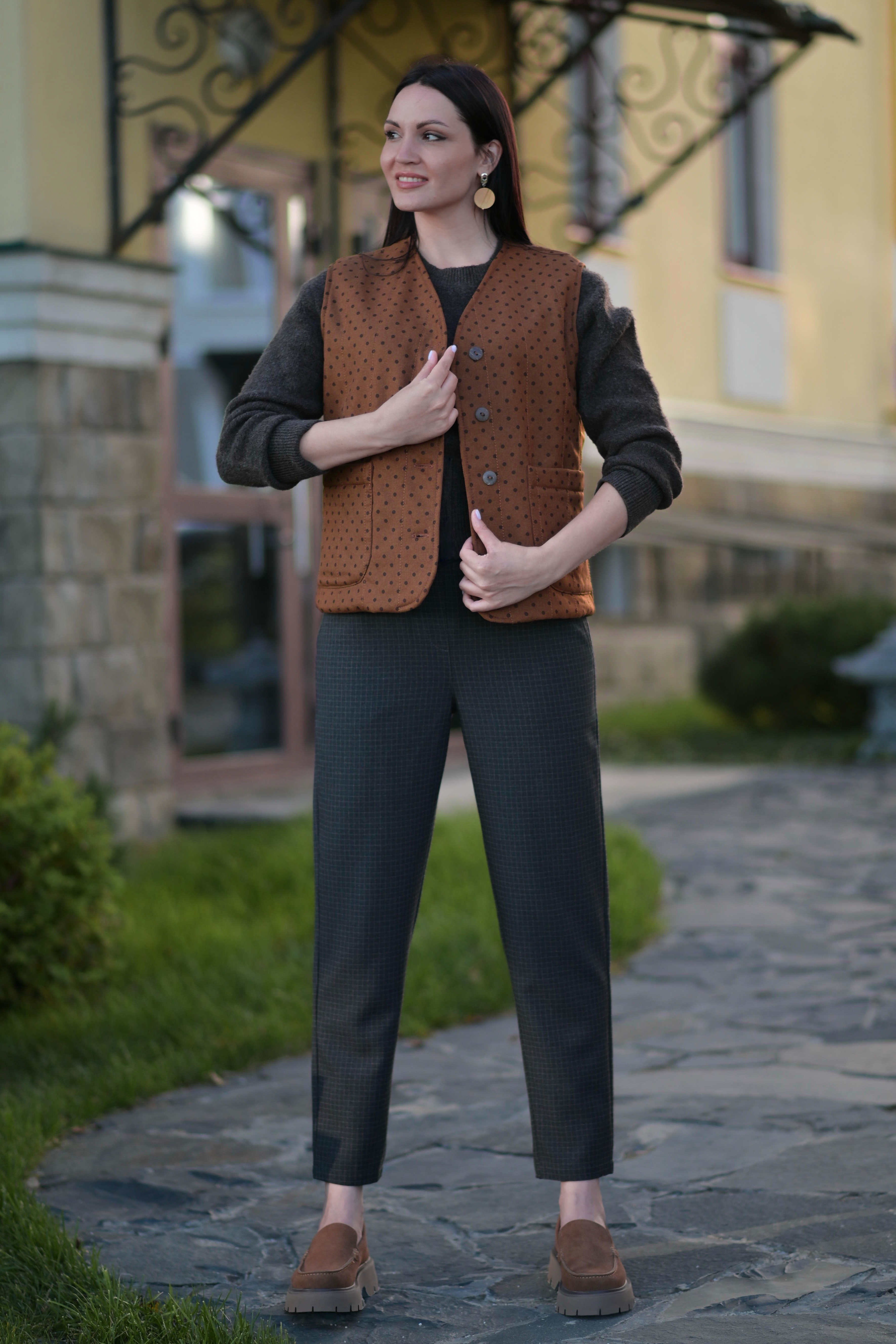 Удобные и любимые всеми брюки теперь выполнены из качественной костюмной ткани в клетку и прекрасно впишутся в осенне-весенний сезон. Брюки, зауженные к низу, имеют длину 7/8, что делает их универсальными на рост от 156- 174 см. По переду имеются 2 боковых кармана, по задней половинке имитация кармана «в рамку». Широкая резинка плотно и комфортно фиксирует изделие по линии талии.