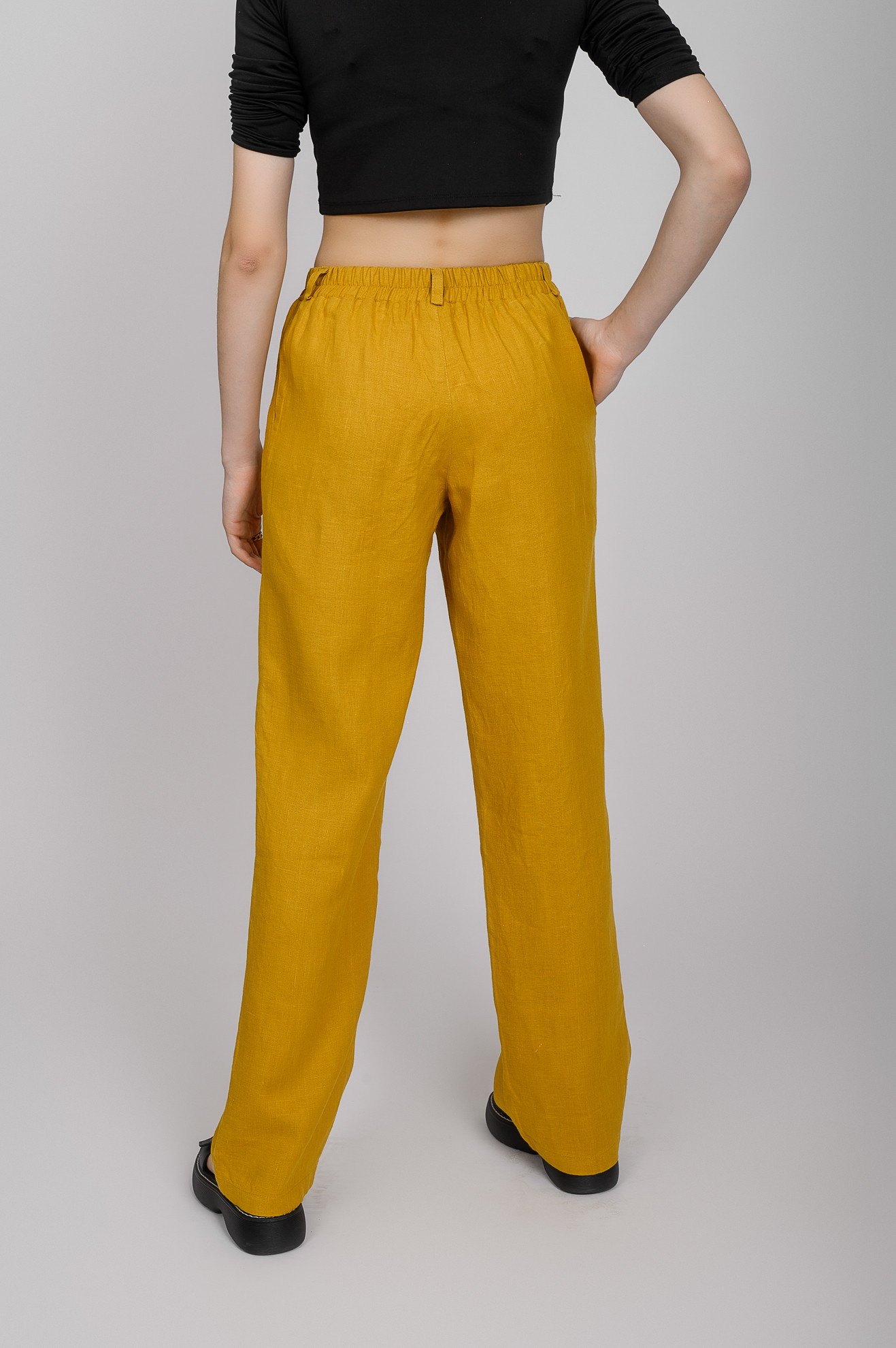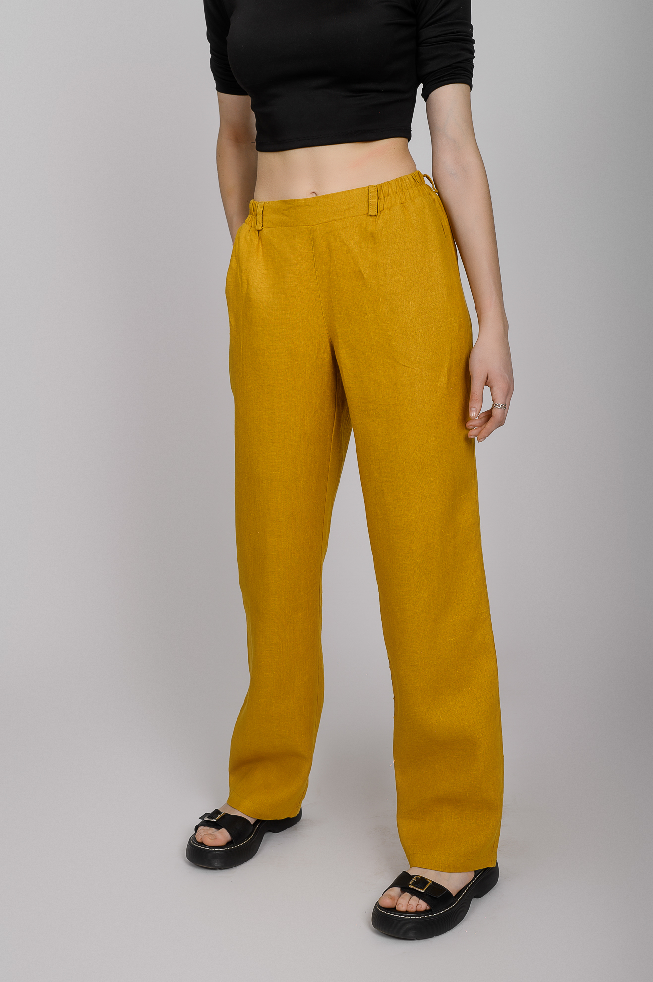 Удобные широкие  летние льняные брюки  с карманами, пояс  на резинке.