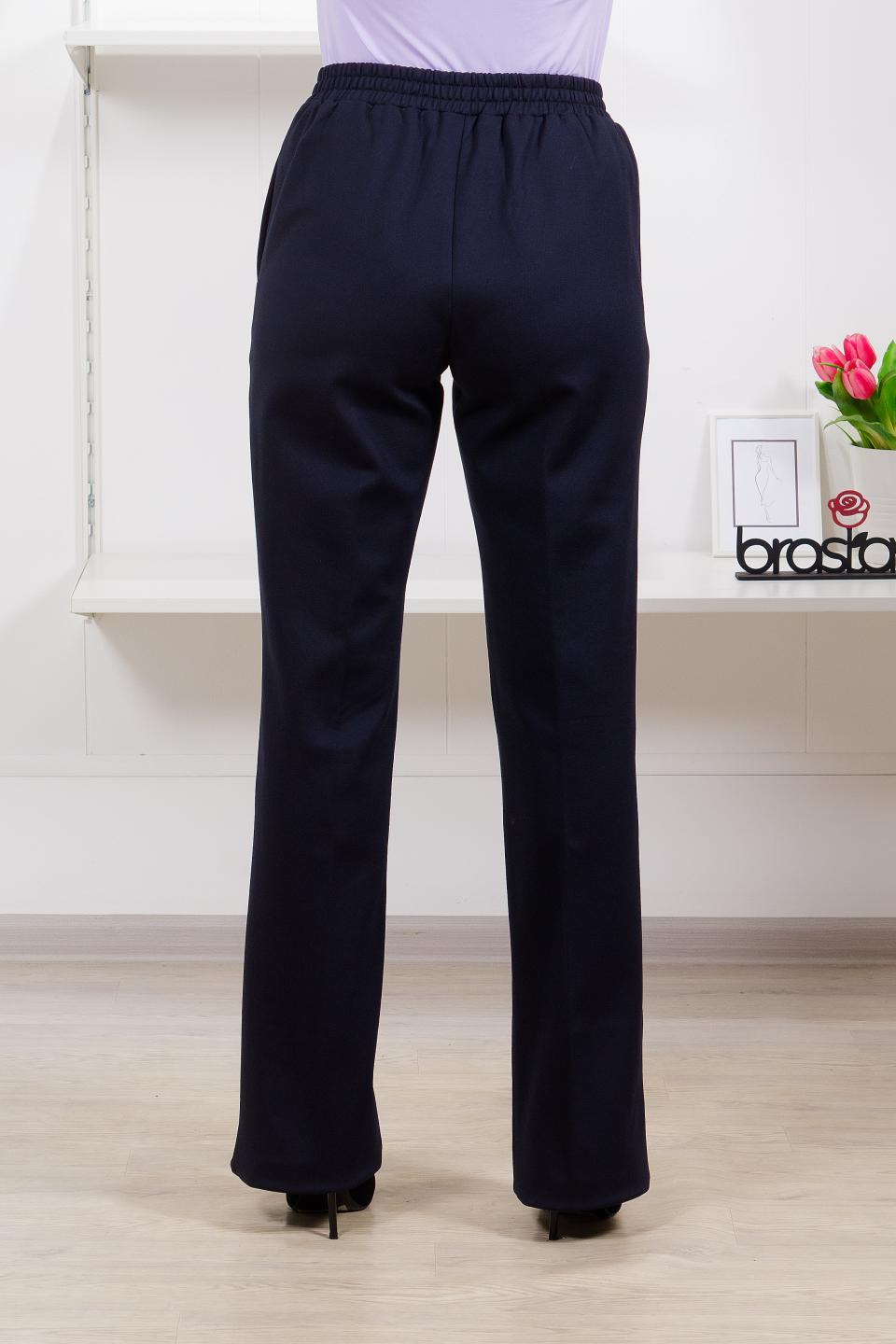 Описание: Прямые брюки дарят современным дамам не только элегантный образ, но и комфорт за счет ширины брюк и наличия краманов в боковом шве. Резинка в поясе и отсутствие застежки - удобное решение в ритме современной жизни.