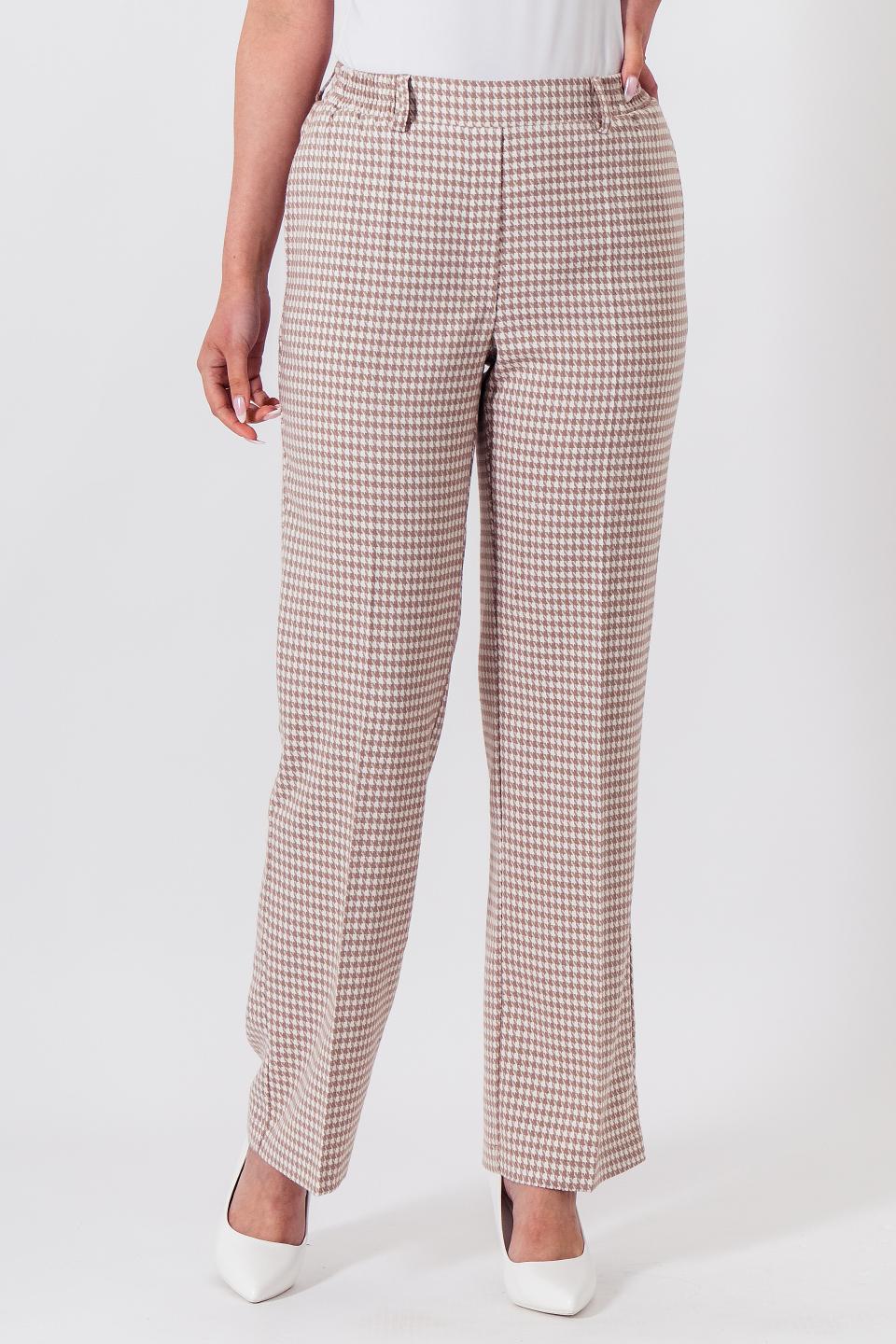 Описание: Прямые брюки дарят современным дамам не только элегантный образ, но и комфорт за счет ширины брюк и наличия краманов в боковом шве. Резинка в поясе и отсутствие застежки - удобное решение в ритме современной жизни.