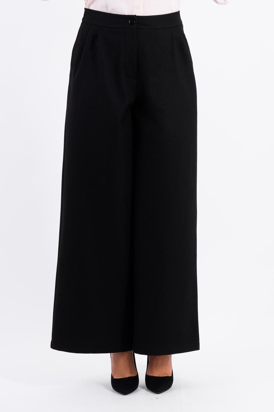 Описание: Стильные и невероятно элегантные брюки-палаццо позволяют чувствовать себя роскошно в любой ситуации! Свободный, слегка расклешенный силуэт, складки по талии и резинка в поясе по спинке - залог эргономичности и комфортной посадки. Боковые карманы позволят иметь под рукой полезные мелочи. Классический крой впишется в базовый гардероб, открывая простор для создания ярких образов для офиса, для прогулки, для праздничного вечернего мероприятия.