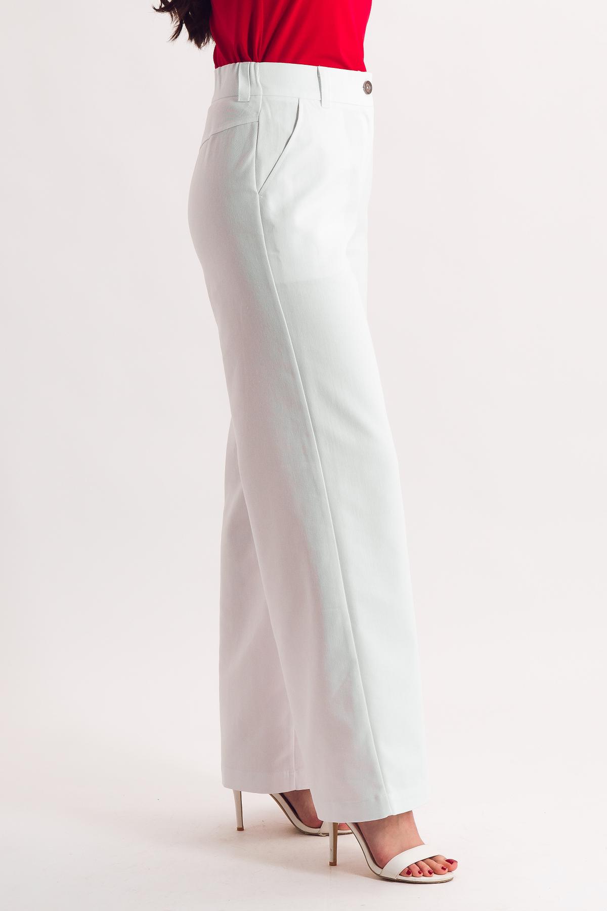 Описание: Прямые брюки дарят современным дамам не только элегантный образ, но и комфорт за счет ширины брюк и наличия боковых краманов. Резинка в поясе спинки - удобное решение в ритме современной жизни.