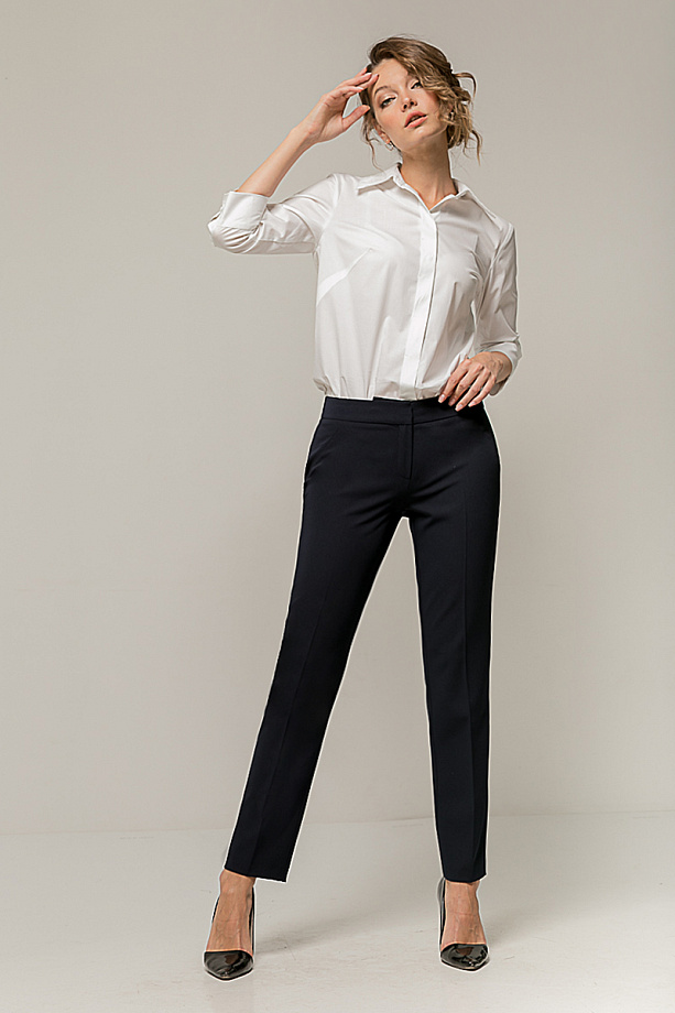 Брюки со стрелками, средней посадки, зауженные к низу,  классической длины..