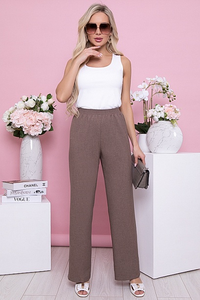 Брюки из легкой костюмной ткани прямого,свободного силуэта.Пояс на эластичной резине.
