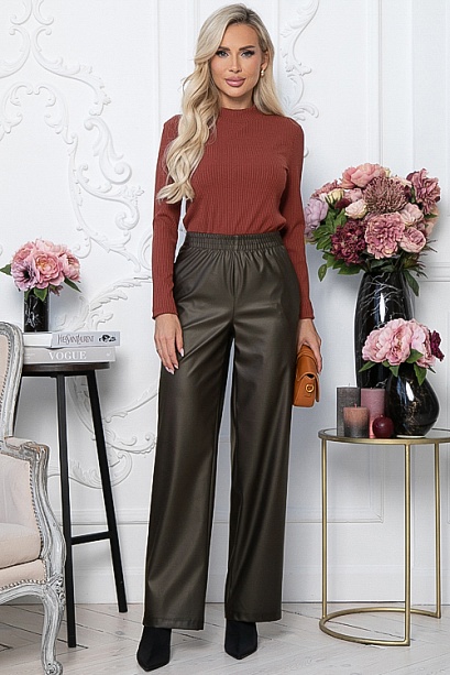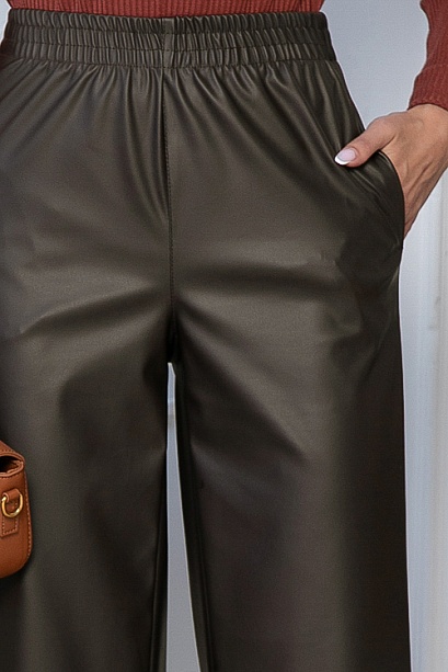 Комфортные брюки прямого,свободного силуэта из экокожи.В боковых швах функциональные карманы,удобную посадку по талии обеспечивает эластичный пояс на резинке.