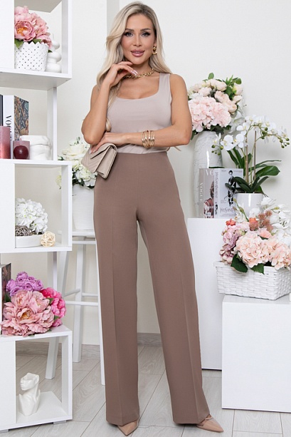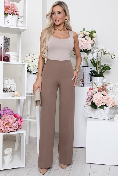 * Брюки из костюмной ткани прямого расклешенного силуэта с застроченными стрелками.Талия на подкройной обтачке внутри,в боковом шве застежка молния.
