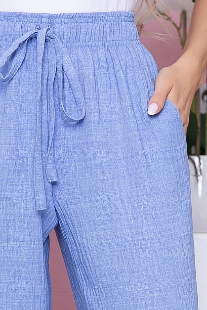 Легкие брюки свободного,прямого силуэта  из комфортного текстильного полотна, удобную посадку по талии обеспечивает эластичный пояс на резинке,В боковых швах функциональные карманы.