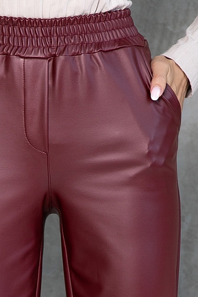 Комфортные брюки из экокожи,в боковых швах функциональные карманы,удобную посадку по талии обеспечивает эластичный пояс на резинке.