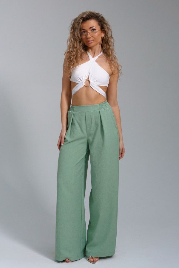 Ткань: лен; Состав: 50% лён, 50% п/э; Производство: г. Иваново, швейное производство НАТАЛИ; Тип изделия: брюки; Цвет: зеленый