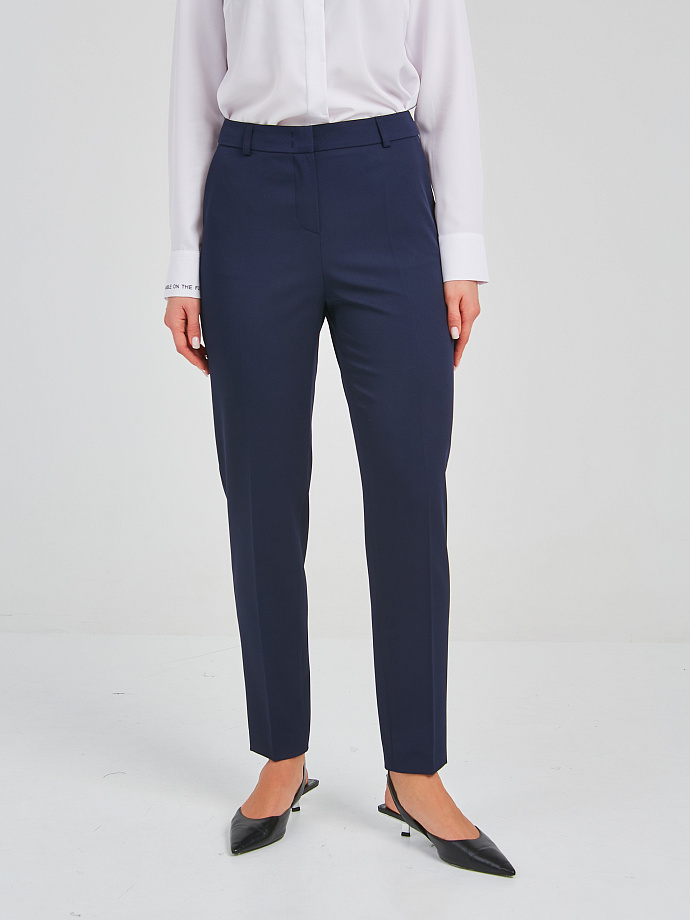 Брюки со шлёвками, слегка зауженные к низу..