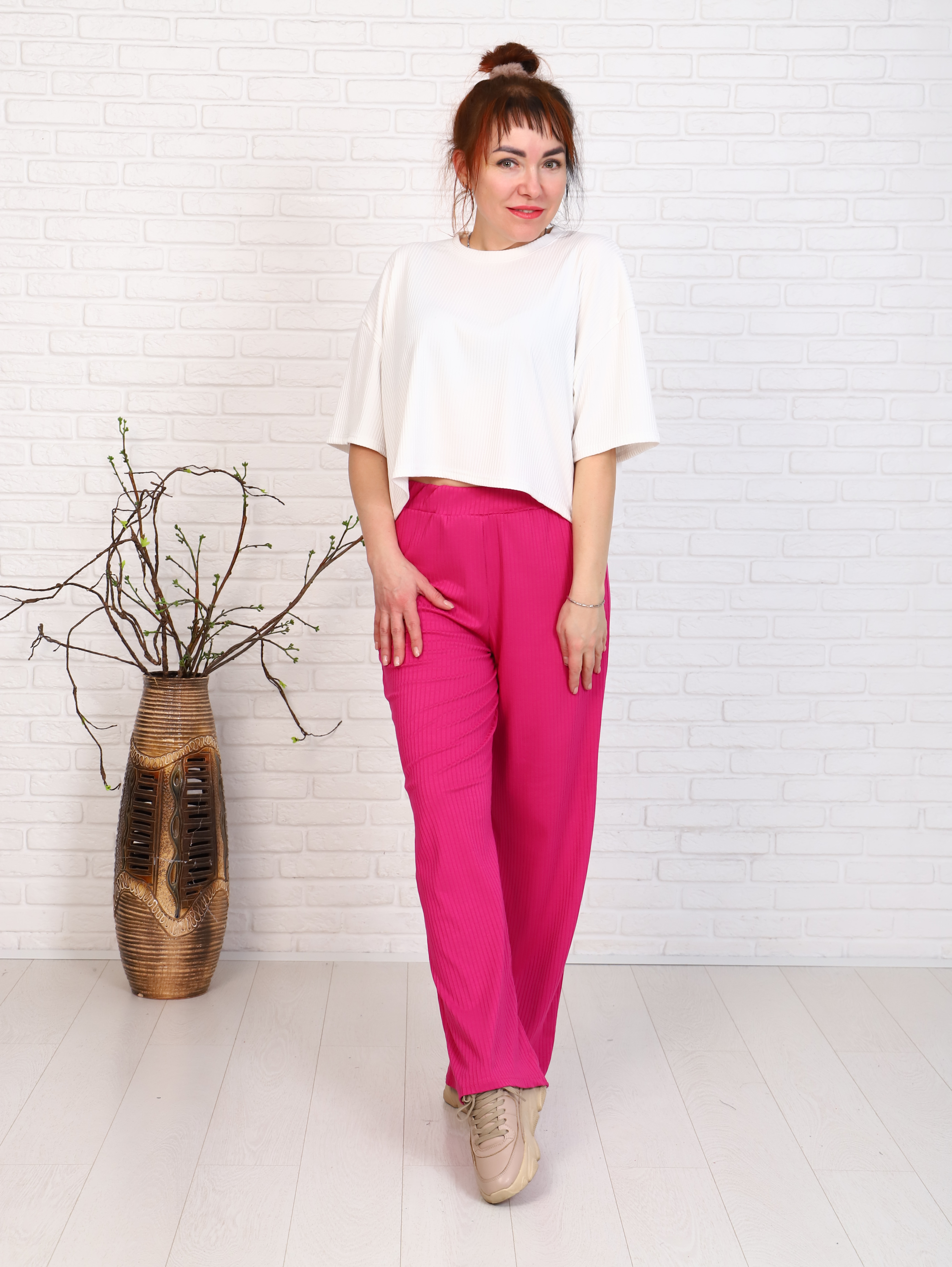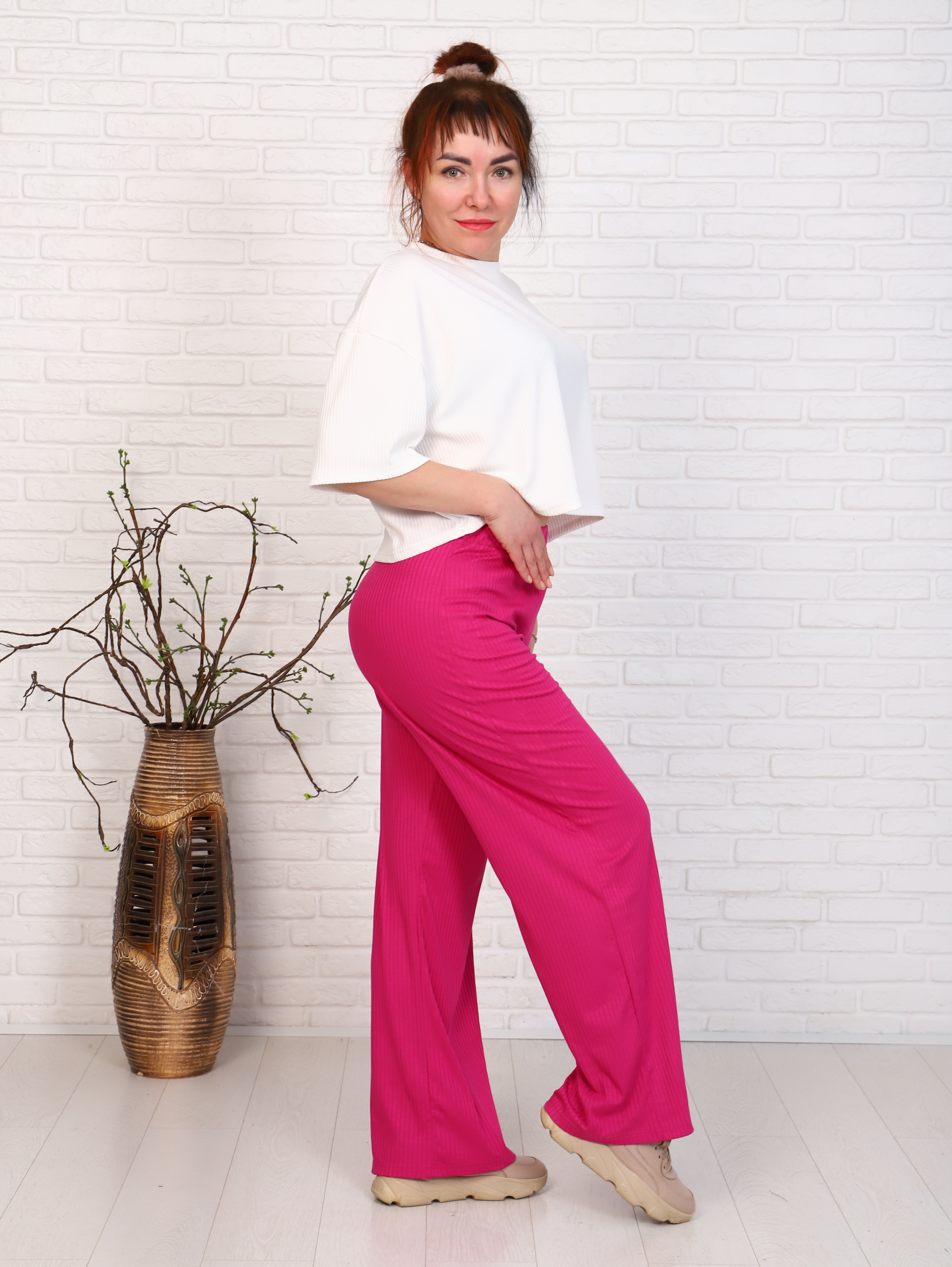 Изумительные лёгкие брючки-палаццо для стильных девушек, которые любят выделяться из толпы. Модель свободного кроя, с очень комфортной посадкой, пояс на широкой резинке. Отличный вариант для прогулок, на отдых или для дома. Такие брюки сочетаются с облегающим топом, короткой футболкой свободного кроя или с классическим вариантом футболки. Яркий, сочный цвет добавит красок в вашу жизнь и поднимет настроение!