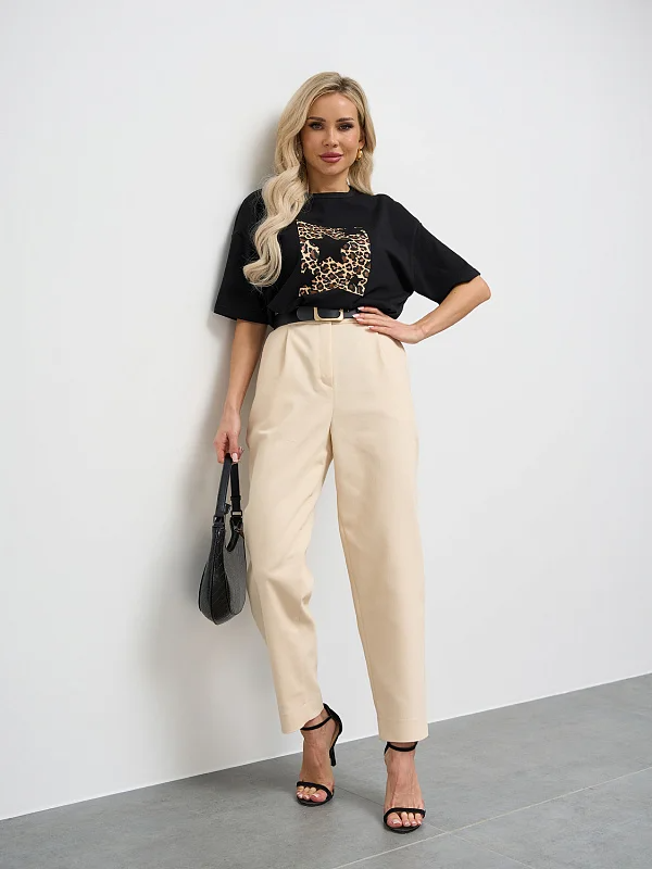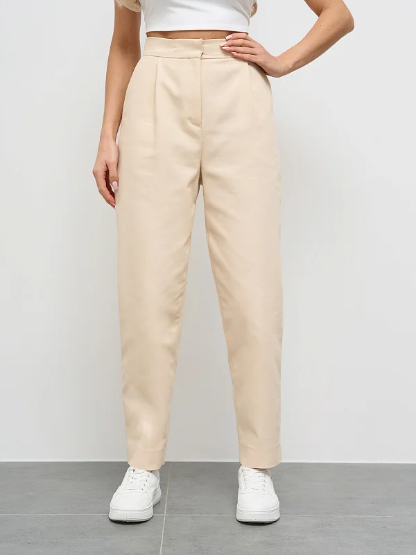 Укороченные брюки-бананы из плотной  хлопковой ткани.
