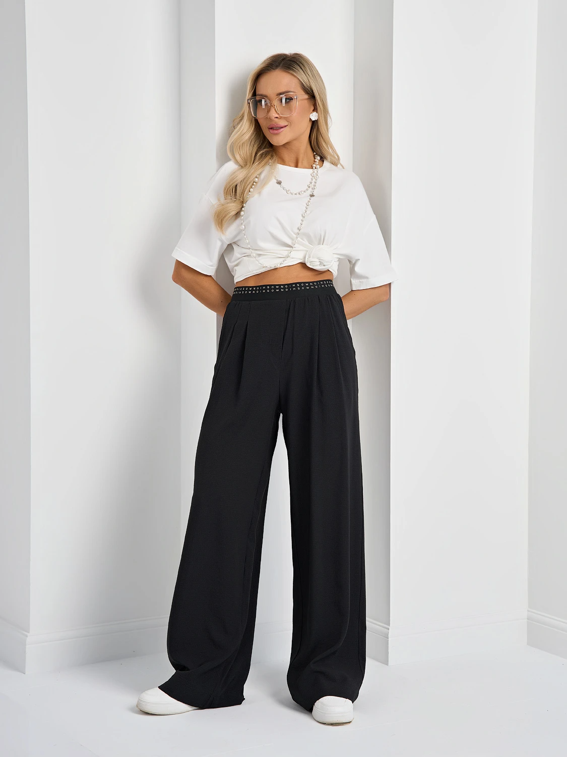 Широкие брюки с защипами по переду из тонкой ткани.