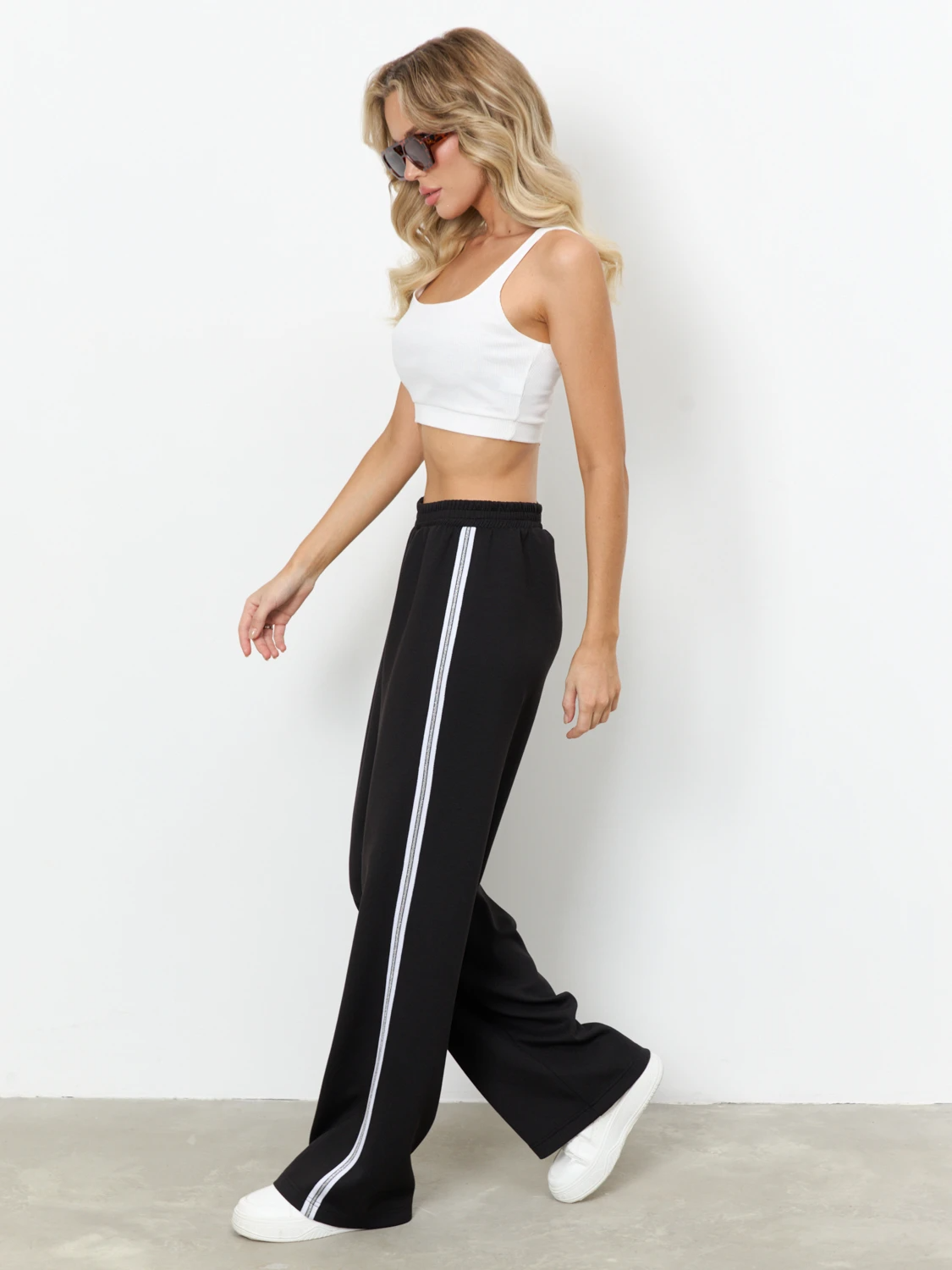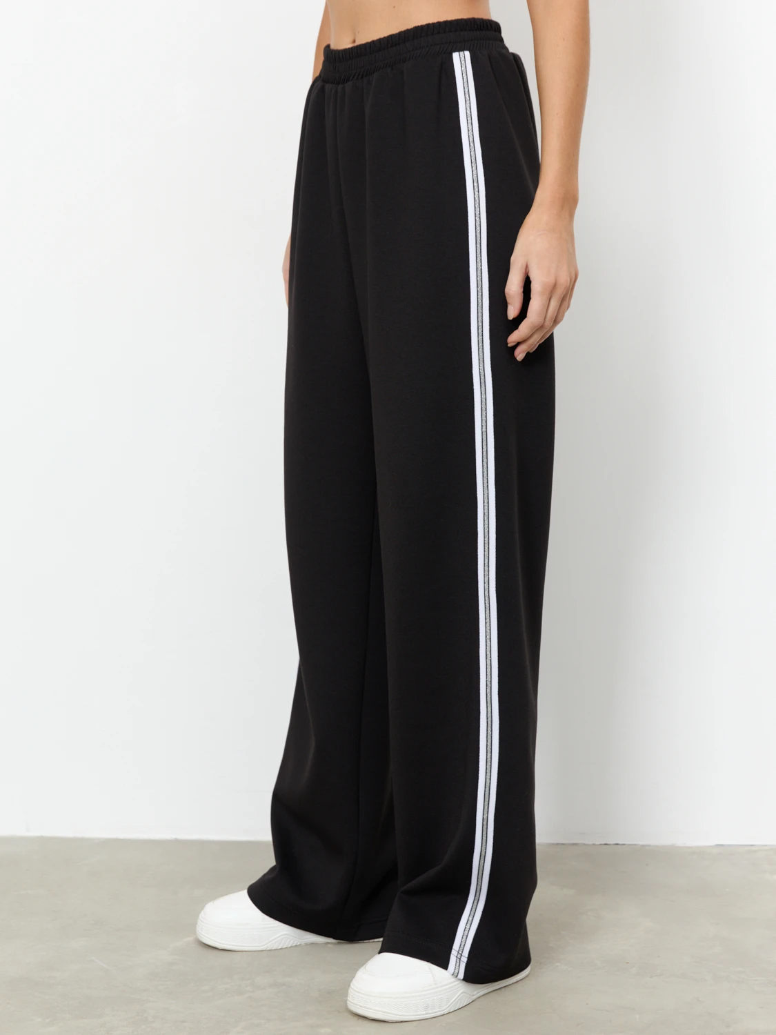 Широкие брюки с лампасами  из трикотажа.