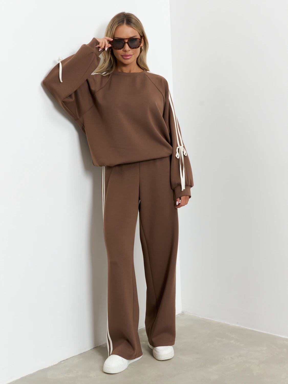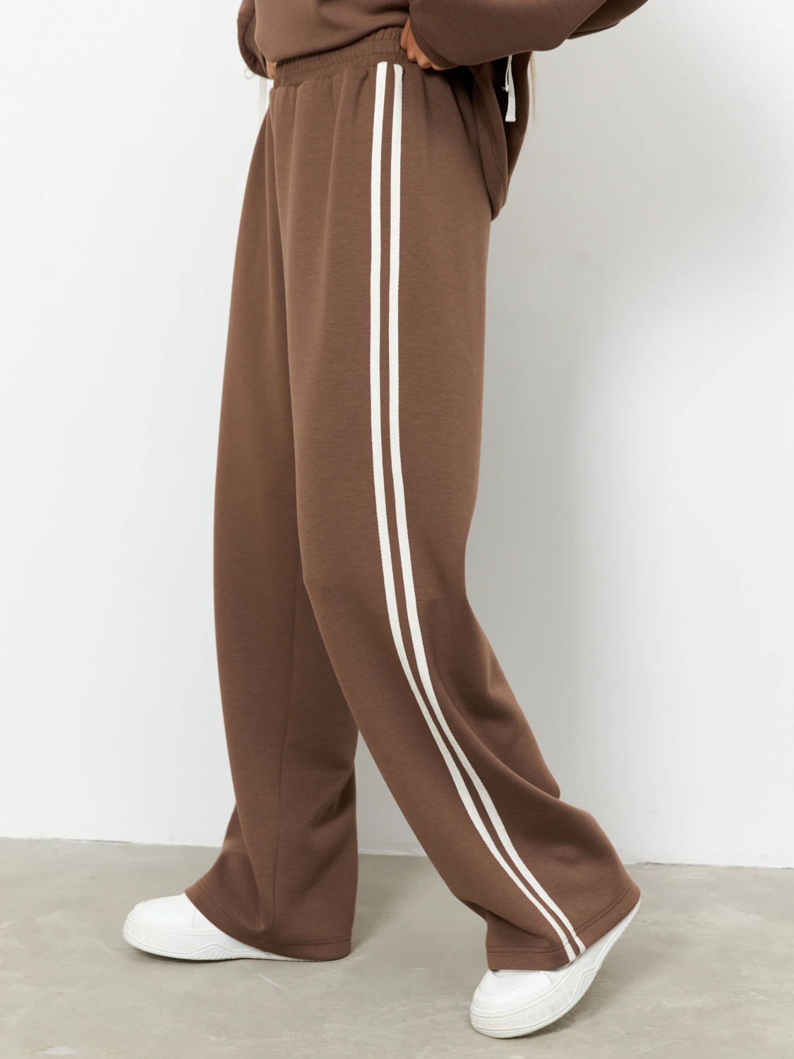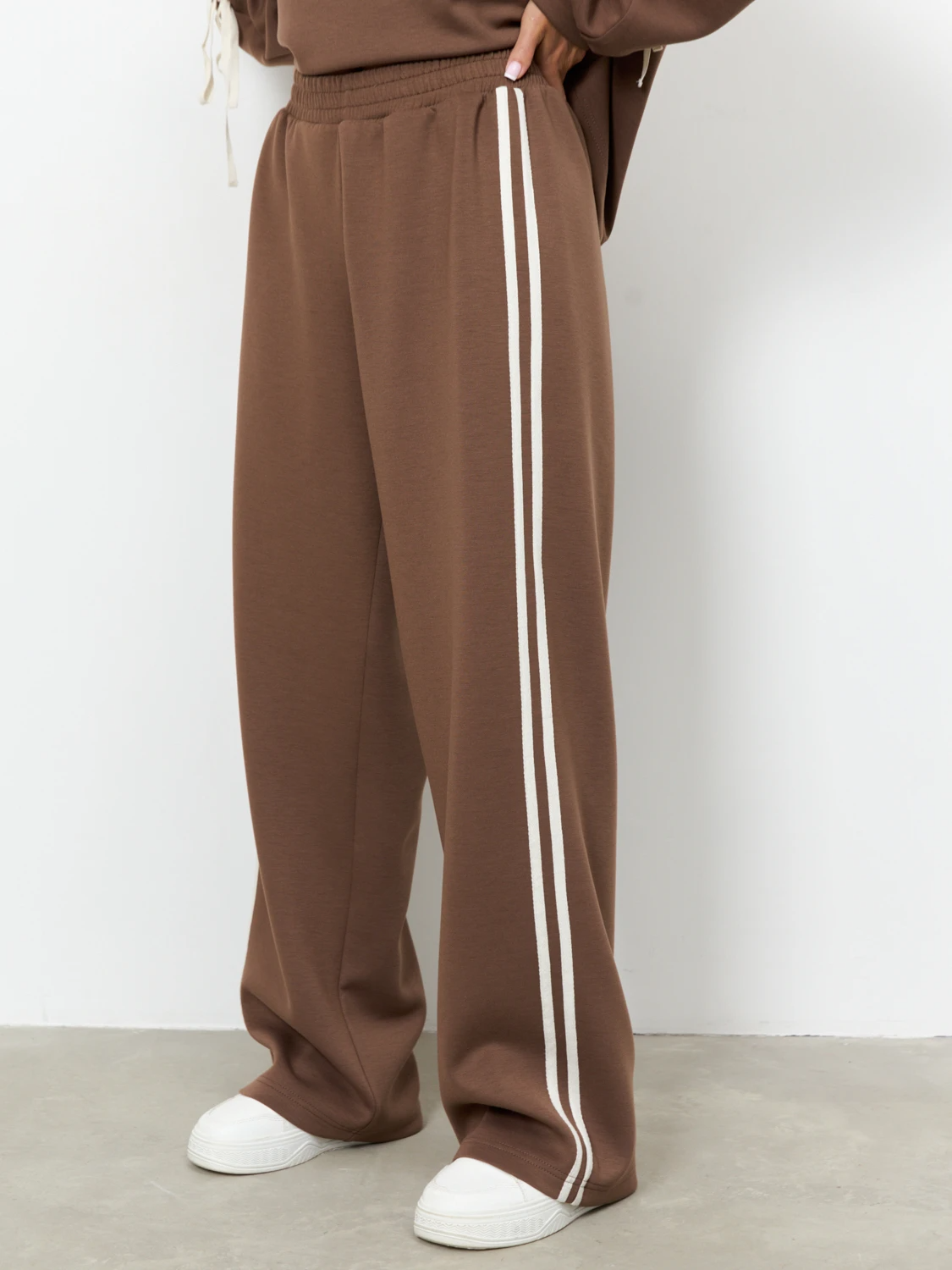 Широкие брюки с лампасами из трикотажа.