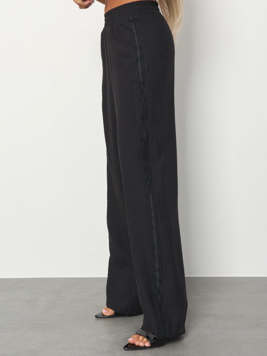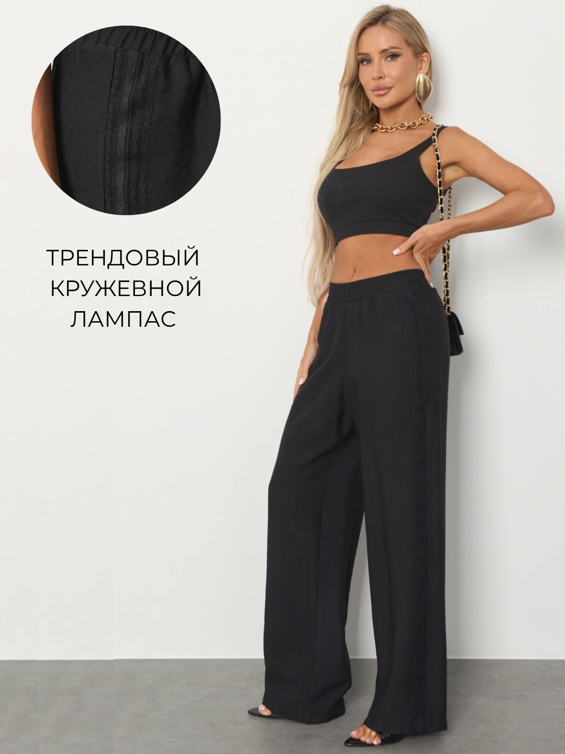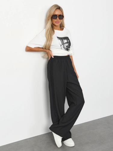 В боковых швах лампас из кружева.