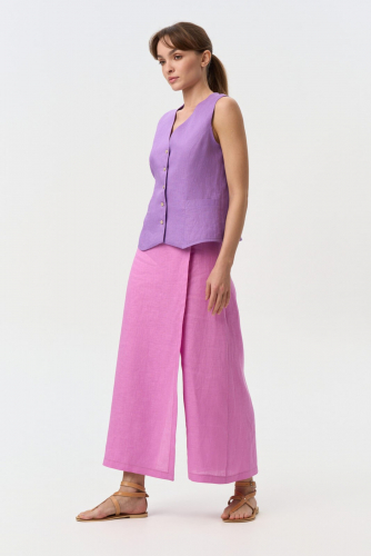 Юбка – брюки с запахом по переду и сзади. А-образного силуэта. Длина брюк 7/8. Застежка на потайную тесьму-молнию в левом боку. Пояс притачной с резинкой  по бокам.