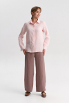 Брюки женские прямые. Пояс притачной с резинкой. Застежка гульфик на молнии. Боковые карманы в отрезном бочке.