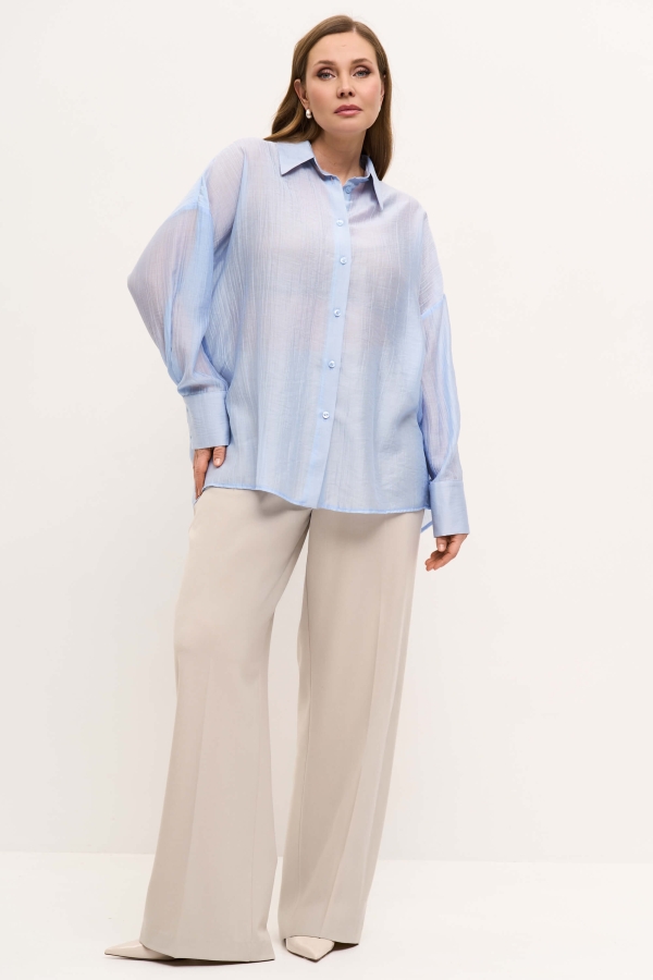 Брюки со стрелками в актуальном оттенке. Модель прямого силуэта. Брюки широкие со стрелками, пояс на резинке. Застежка на молнию и пуговицу, боковые карманы.