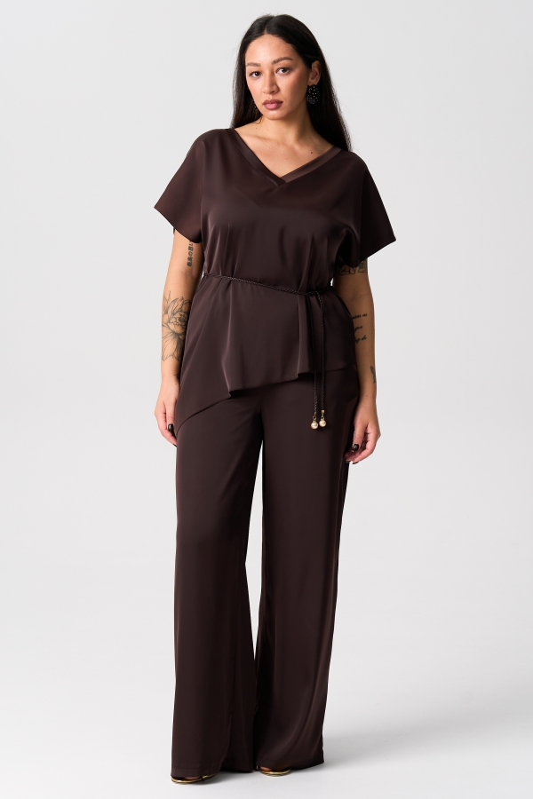 Брюки из атласа высокого качества на резинке. Модель свободного силуэта на поясе с резинкой. По переду боковые карманы.