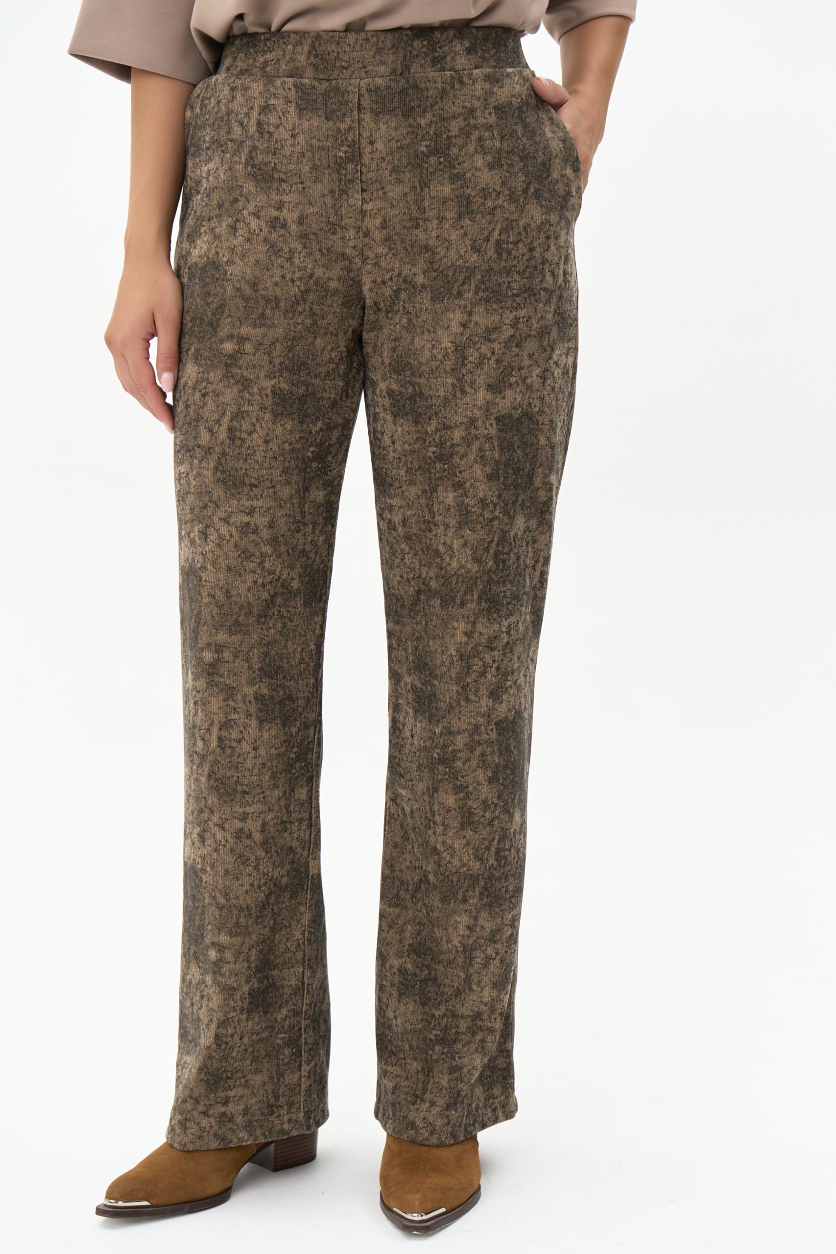 Брюки “Барнео” – это идеальный выбор для женщин, которые ценят стиль и комфорт. Они универсальны и сочетаются с любыми вещами из Вашего гардероба. Прямой силуэт, талия на резинке, карманы.