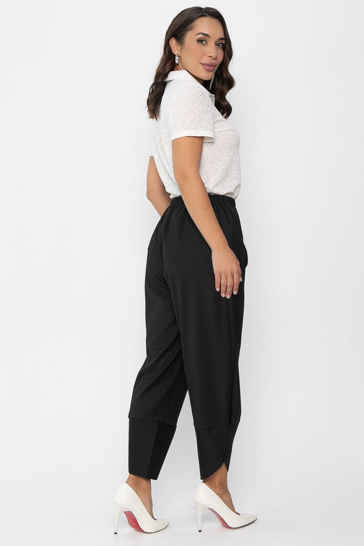 Поклонницы бохо знают толк в моде и ценят комфорт. Черные широкие брюки в стиле бохо для полной свободы в движении. Такая модель брюк будет смотреться отлично как со спортивным верхом, так и с классическим. Удобная эластичная талия. Оригинальные зауженные манжеты в нахлест придают изделию особый шарм.