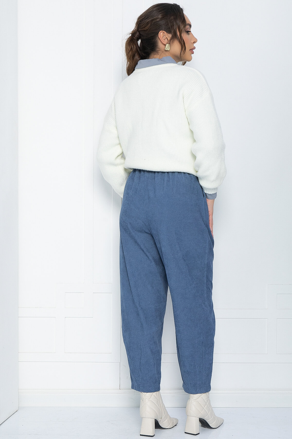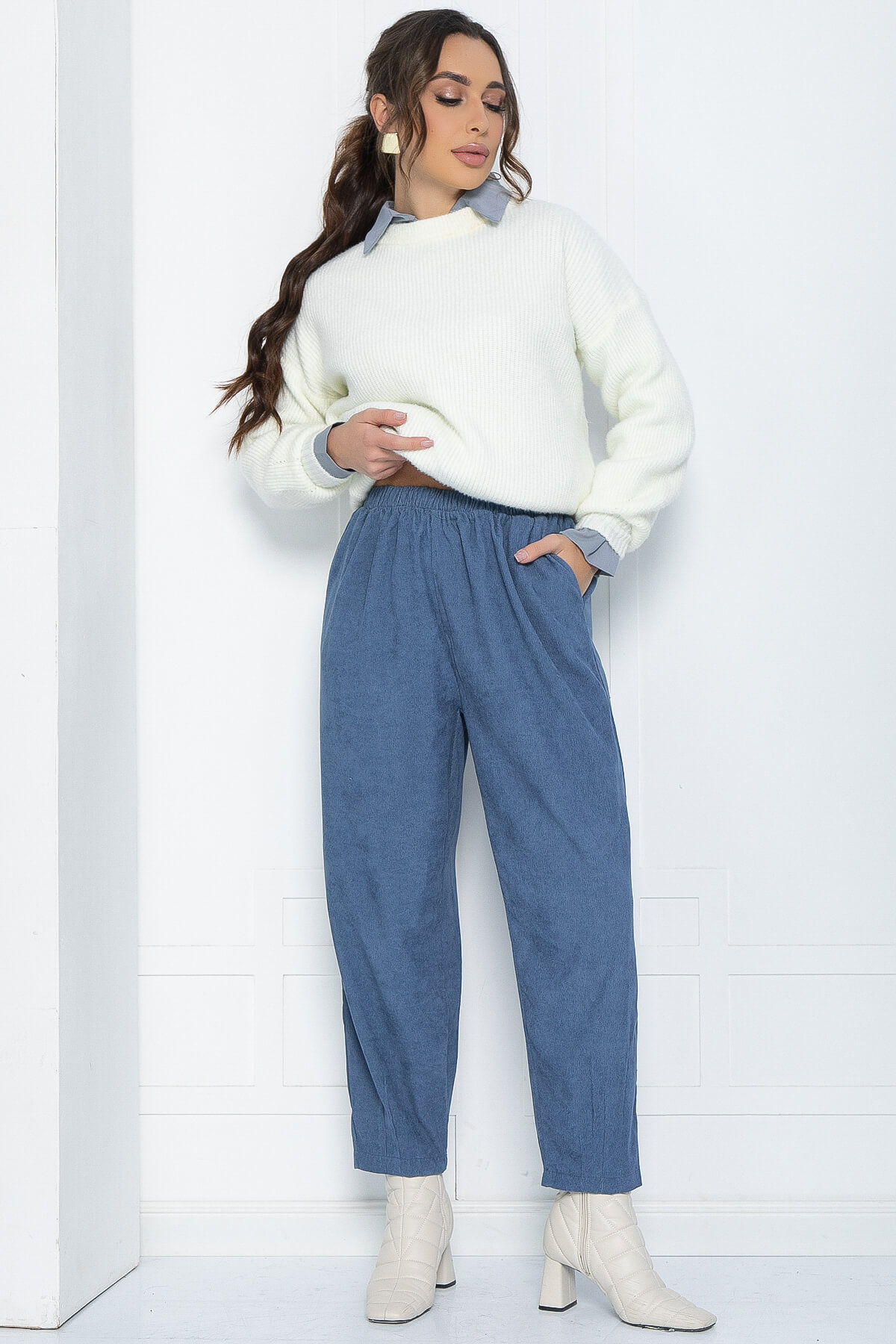 Объёмные брюки в стиле бохо - это свободный непринужденный стиль современной моды. Шароварный силуэт создается за счет резинки по талии, свободной посадки в бедрах, бокового защипа по низу и оригинального высокого манжета в виде тюльпана. Свободные, прямые, просторные брюки бананы выгодно подчеркивают женские формы и скрывают недостатки. Комбинируйте их с различными видами топов, джемперов, блузок или футболок. Брюки выполнены из комфортной в носке ткани, которая не вытягивается и не деформируется после стирки.