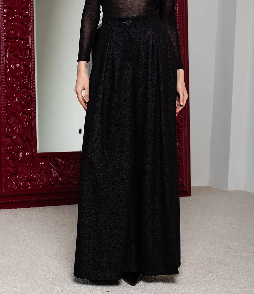 Широкие классические брюки с защипами из твида. Рост модели 173, 84-58-89.