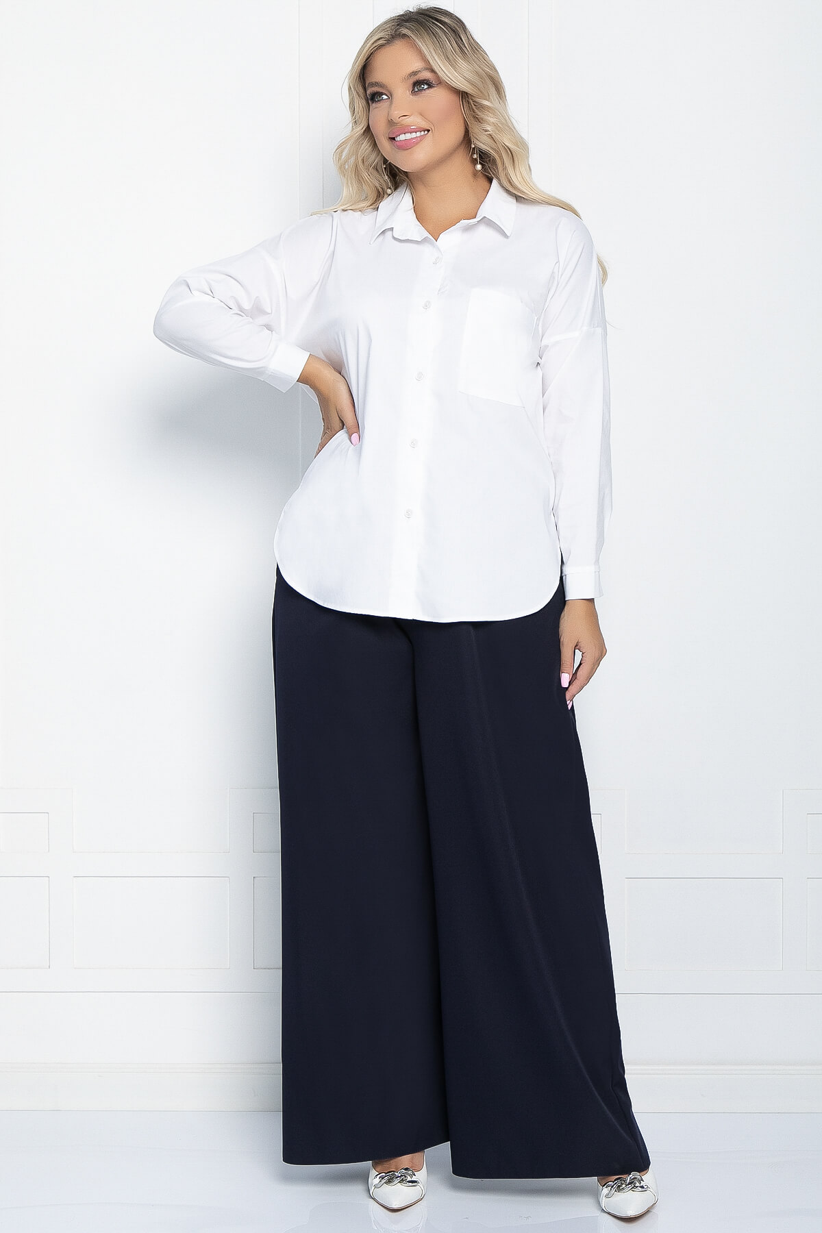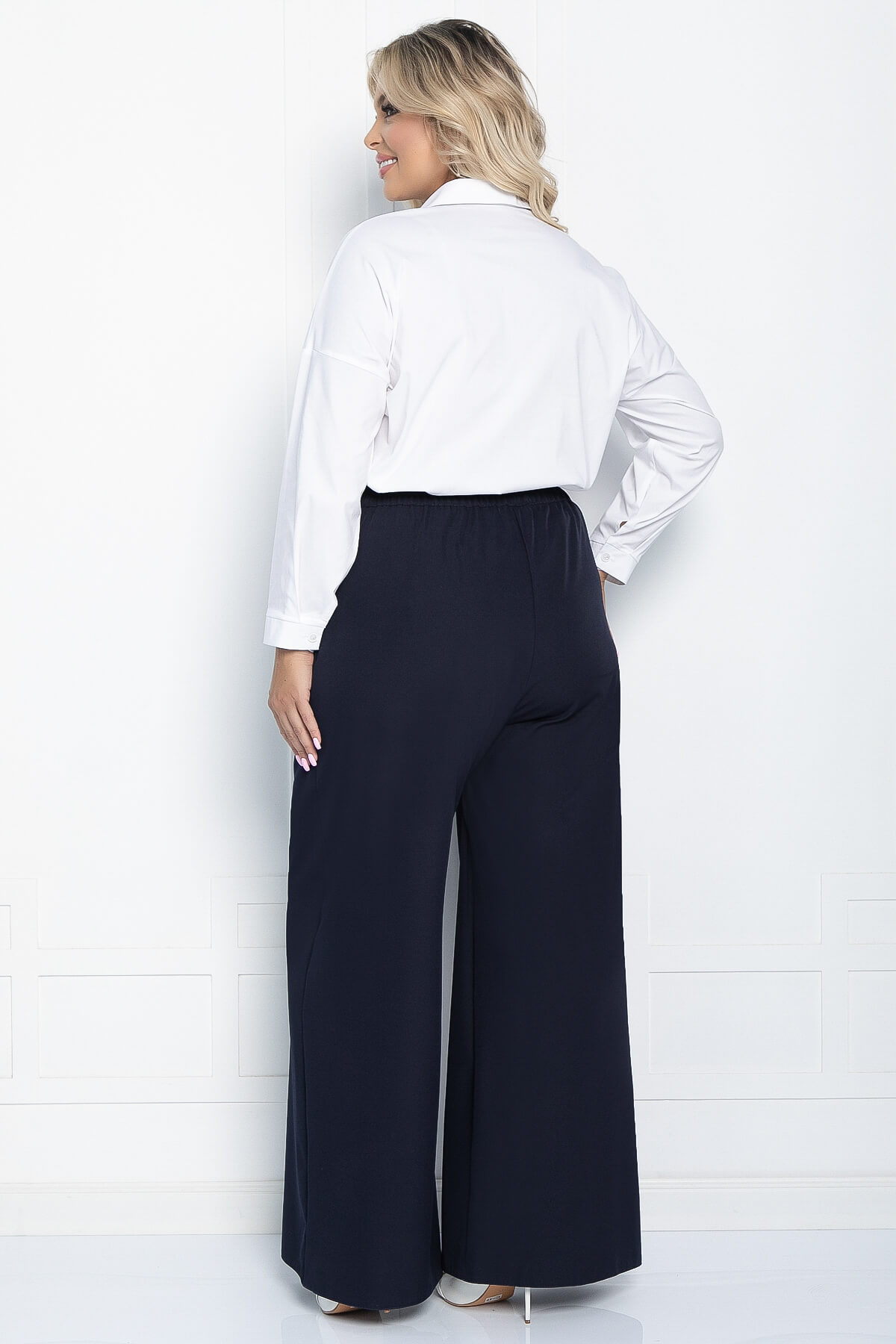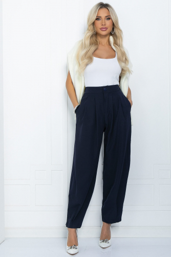 Роскошные брюки палаццо прекрасно подойдут для стильного делового образа. Тёмно-синий цвет позволяет комбинировать их с разнообразным по цвету верхом. Такие брюки отлично подходят на любой случай - на учебу, работу и даже на торжественное мероприятие! Карманы есть в боковых швах. По талии притачной пояс, по спинке резинка.
