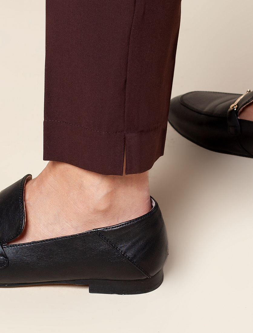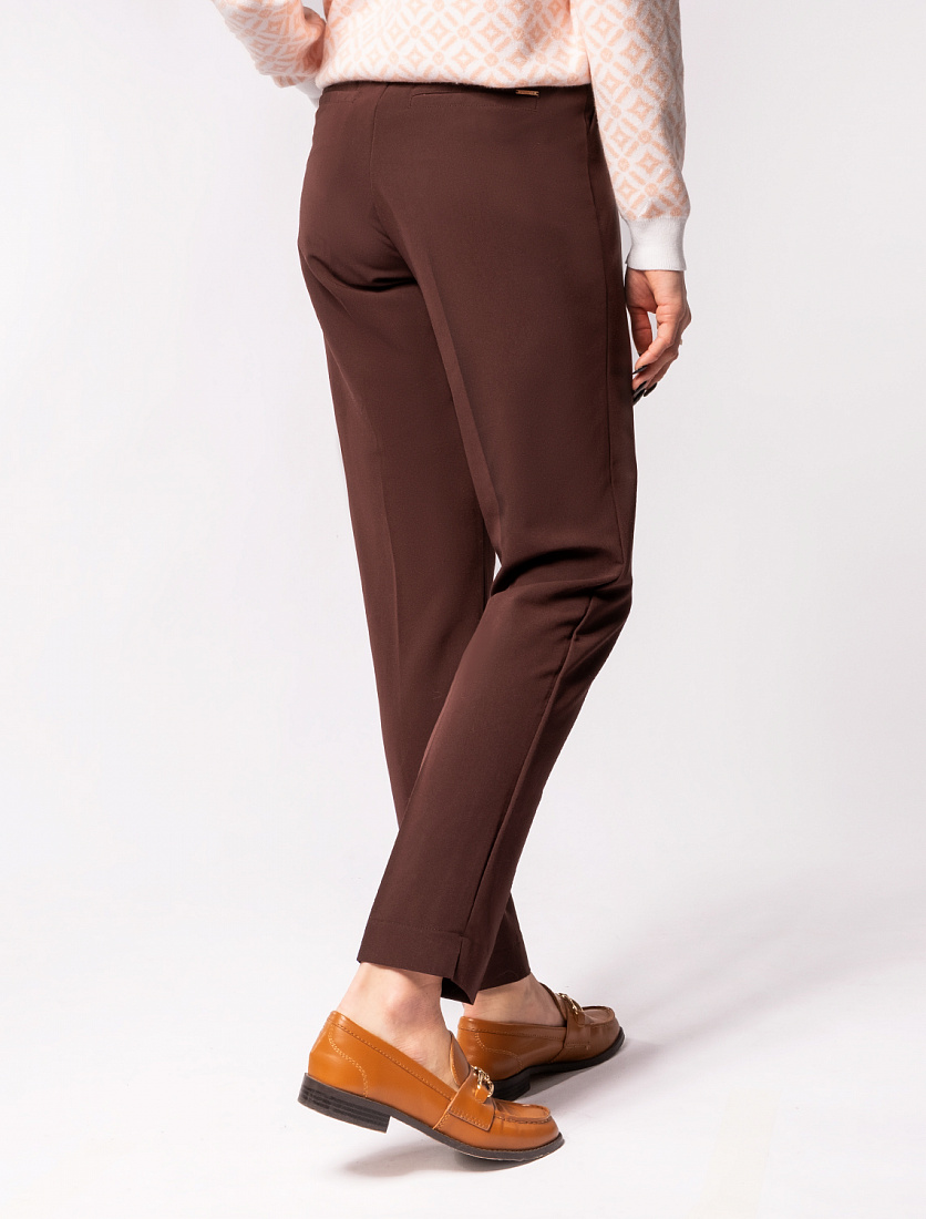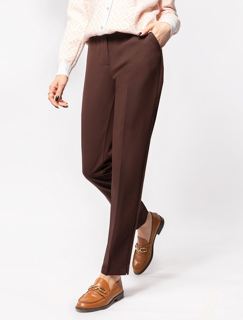 Брюки-дудочки выполнены из эластичной поливискозы, гарантируют непревзойдённый комфорт и формоустойчивость, хорошо тянутся и не мнутся. В таких брюках будет комфортно даже в помещении с отоплением. Благодаря наличию вискозы в ткани тело будет всегда дышать. Стрелки визуально вытягивают силуэт. Посадка на талии. Брюки дополнены двумя боковыми карманами и двумя карманом сзади.