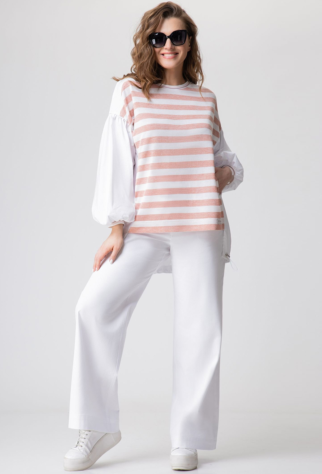 Модель: ЕВА ГРАНТ 7077-2 белый Ро..показатьст: 164-170 см (рост модели на фото 170см) Сезон: Весна-Лето Тип ткани: Хлопок 71%, полиэстер 26%, спандекс 3%Брюки прямого силуэта на притачном поясе выполнена из хлопкового джинсы, застёжка центральная, гульфик на молнию, по задним половинкам накладные карманы, пояс со шлевкамист: 164-170 см (рост модели на фото 170см)